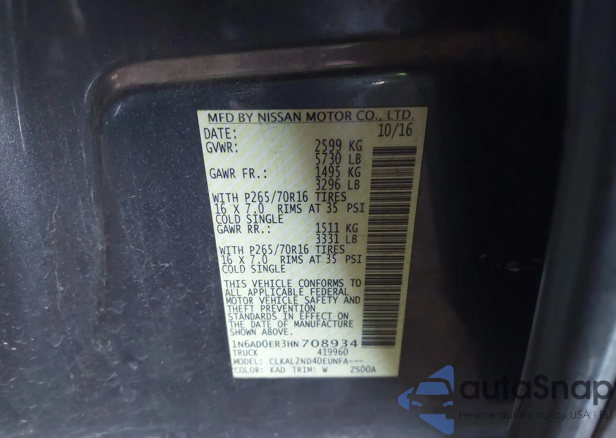 • VIN: 1N6AD0ER3HN708934