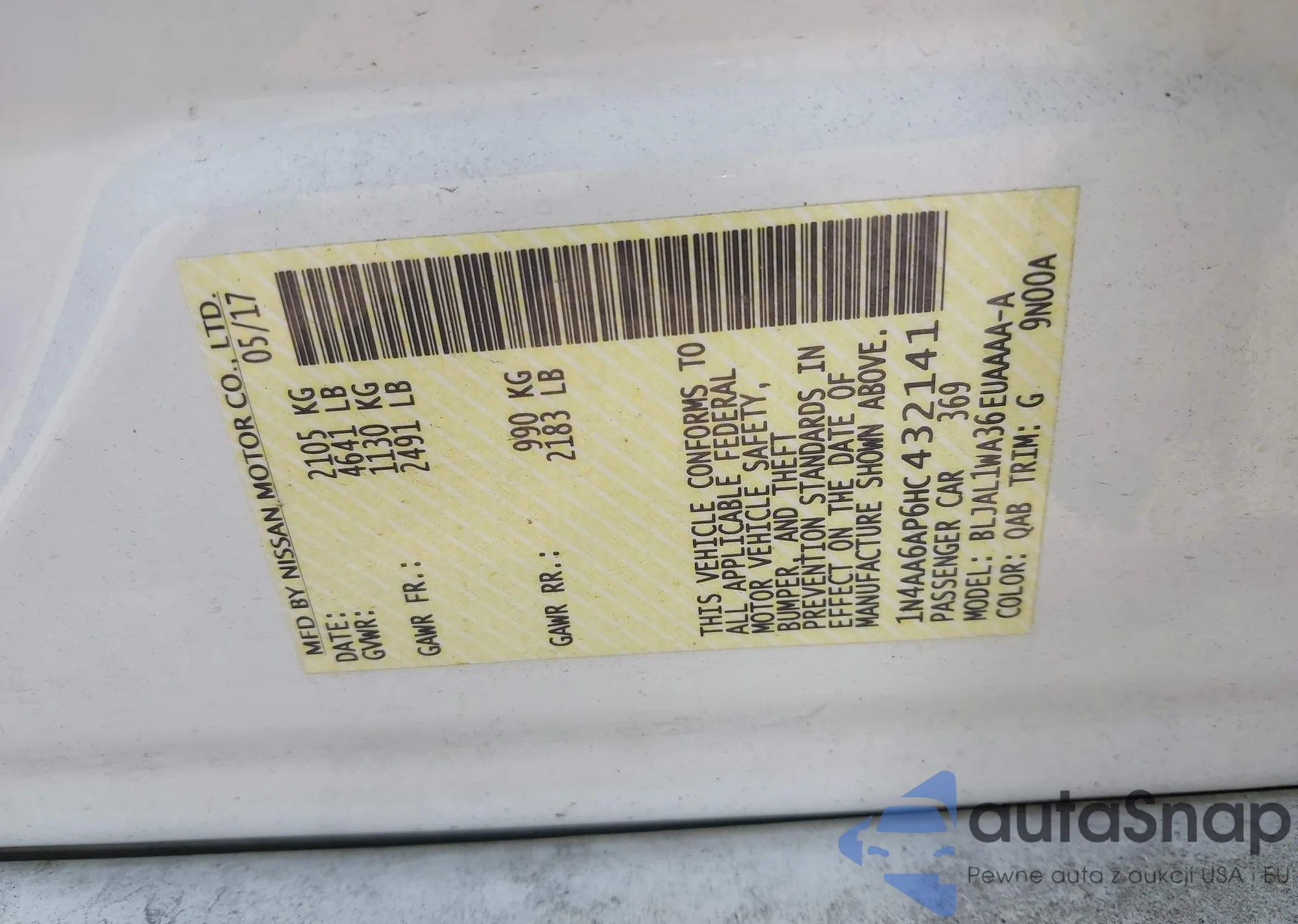 VIN: 1N4AA6AP6HC432141