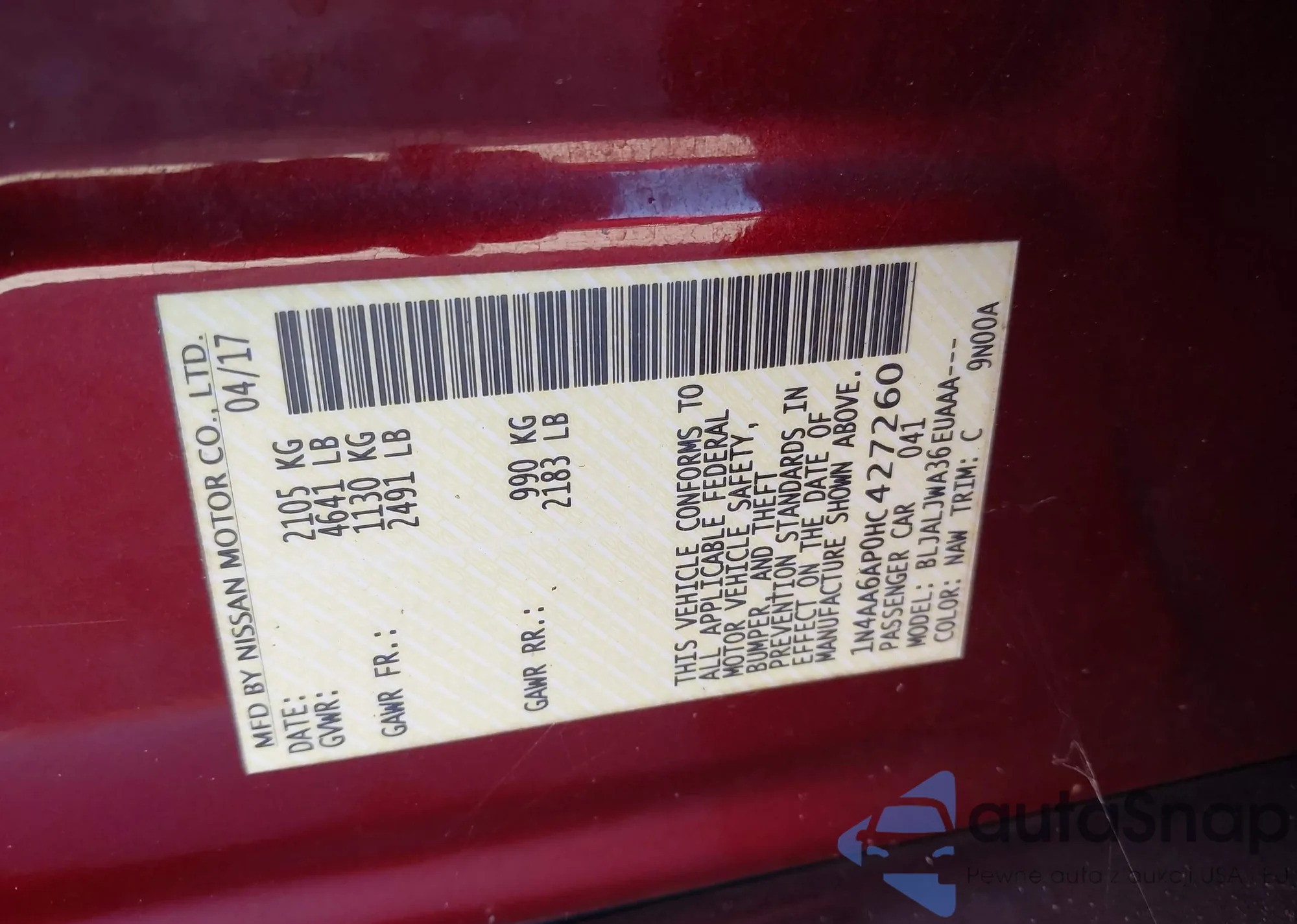 VIN: 1N4AA6AP0HC427260