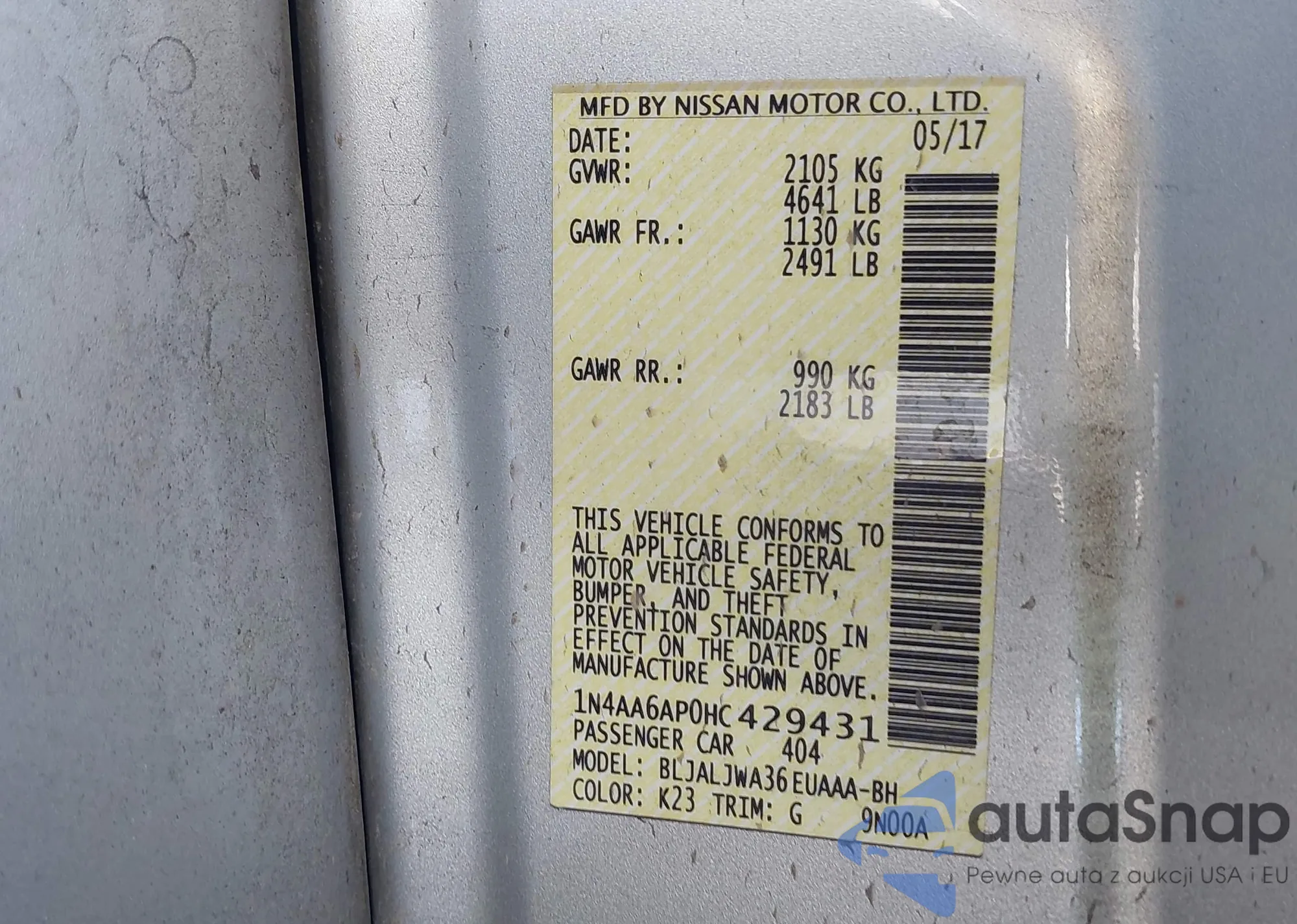 VIN: 1N4AA6AP0HC429431