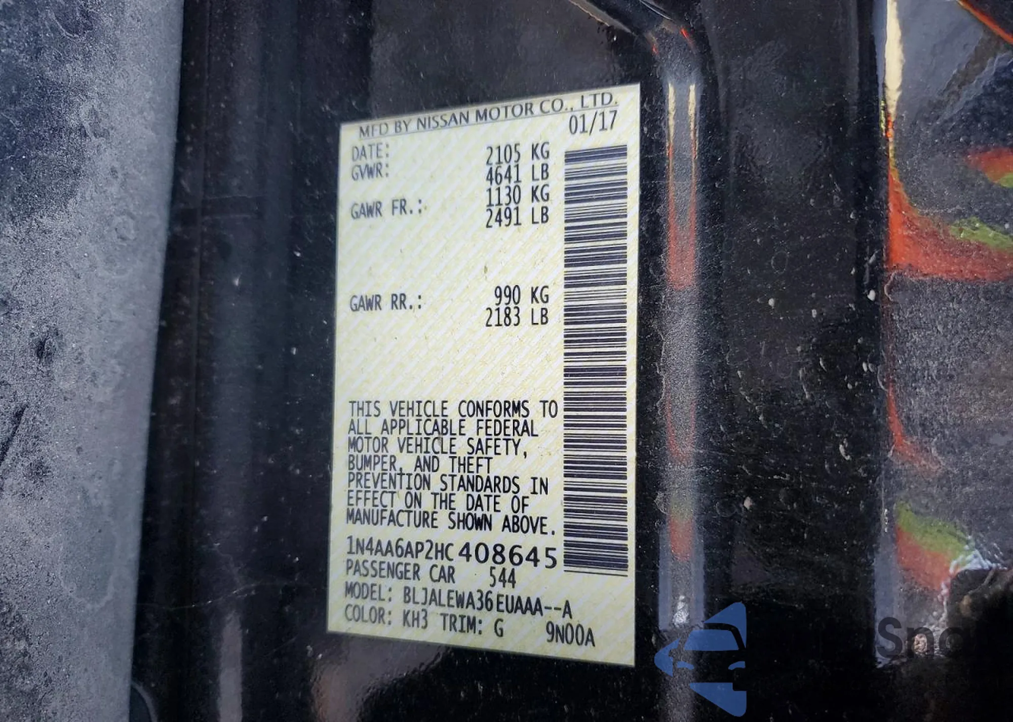 VIN: 1N4AA6AP2HC408645