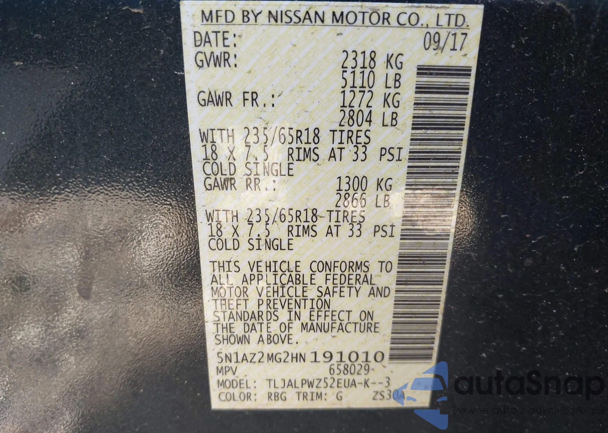 Автомобиль Nissan Murano 2017 (VIN 5N1AZ2MG2HN191010) ранее не участвовал в торгах. Документы чистые, пробег соответствует или ниже среднего по рынку. Продаётся страховой компанией — рекомендуем покупку. Доставка в порт займет около 6–8 недель.