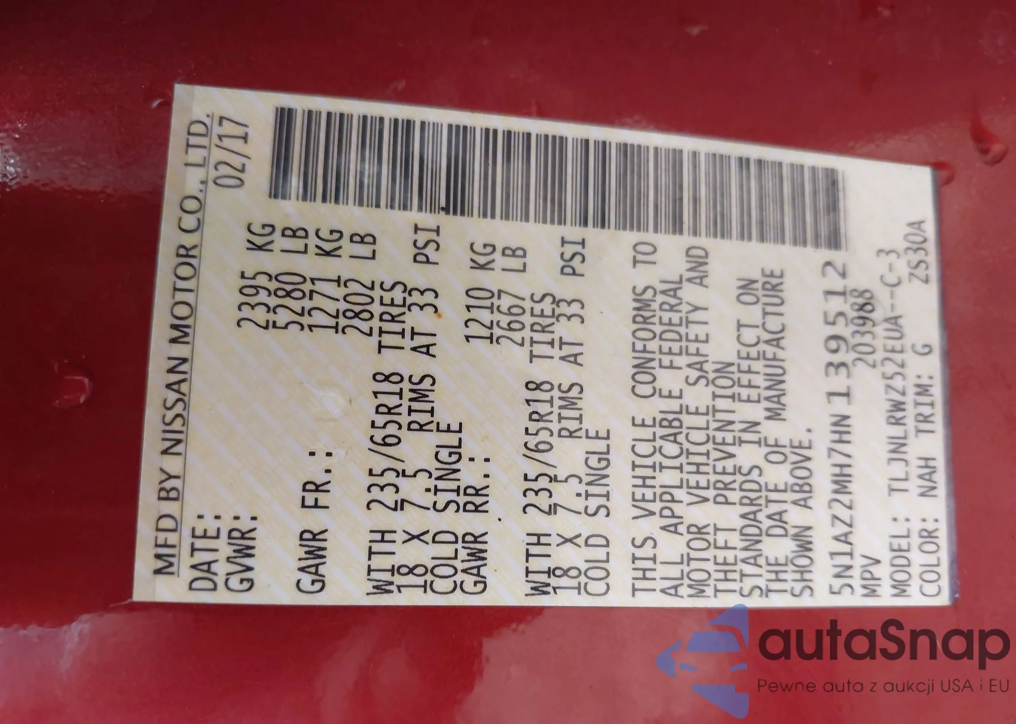 VIN: 5N1AZ2MH7HN139512