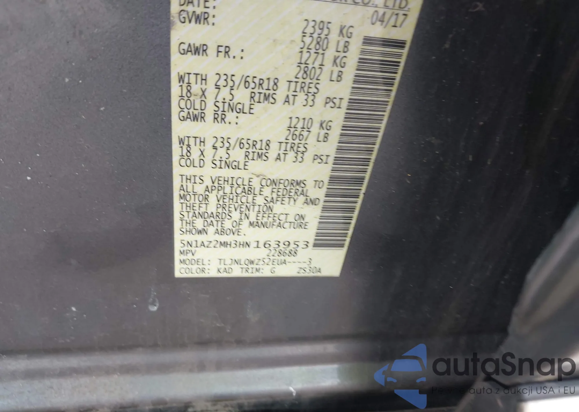 VIN: 5N1AZ2MH3HN163953