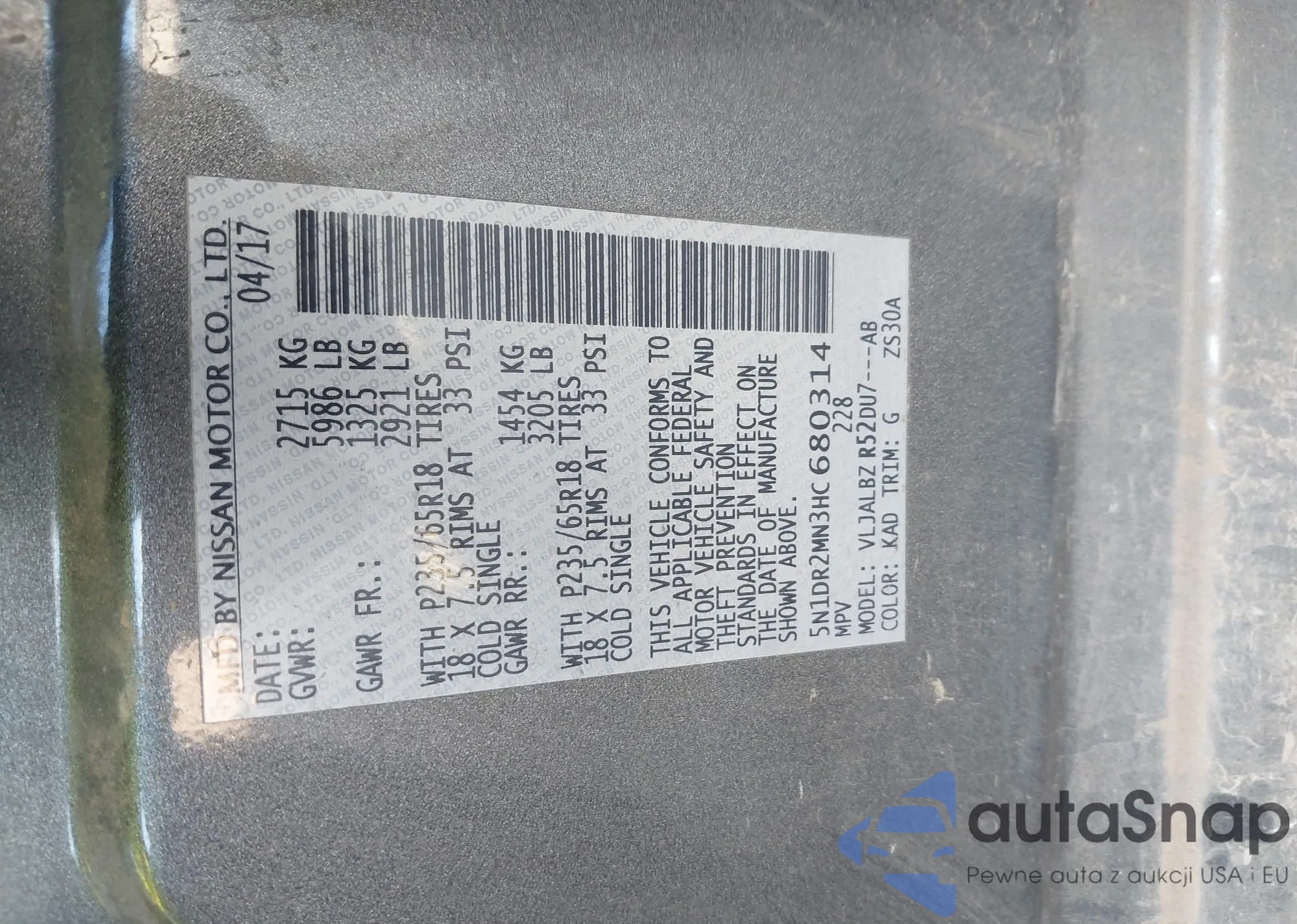 VIN: 5N1DR2MN3HC680314