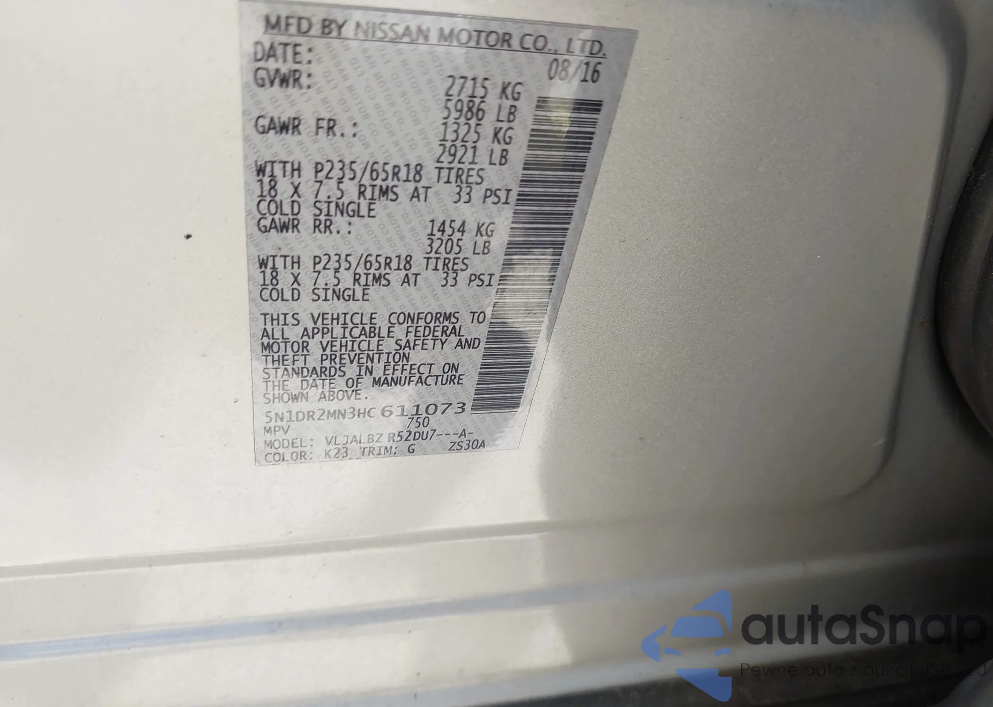 VIN: 5N1DR2MN3HC611073