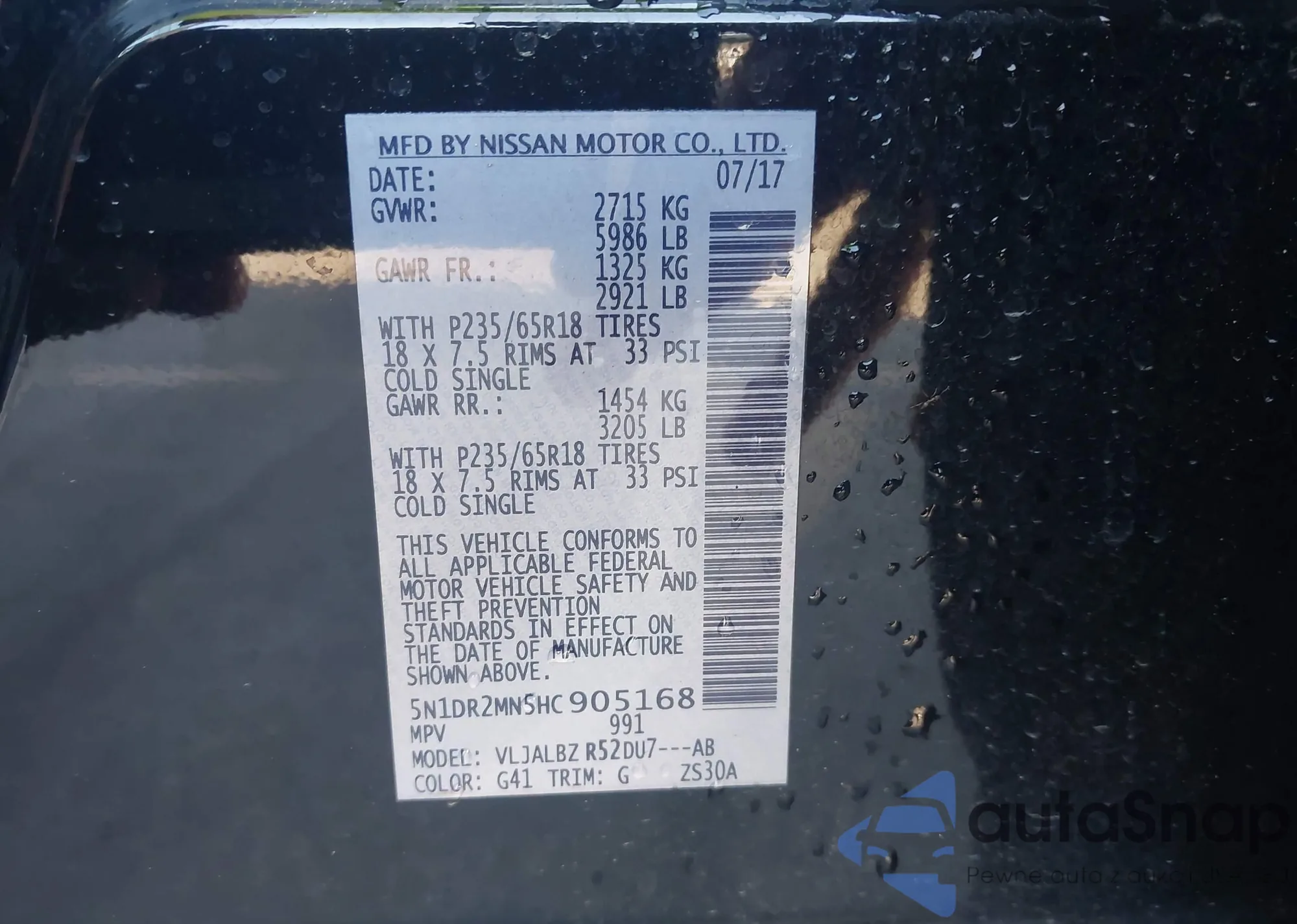 VIN: 5N1DR2MN5HC905168