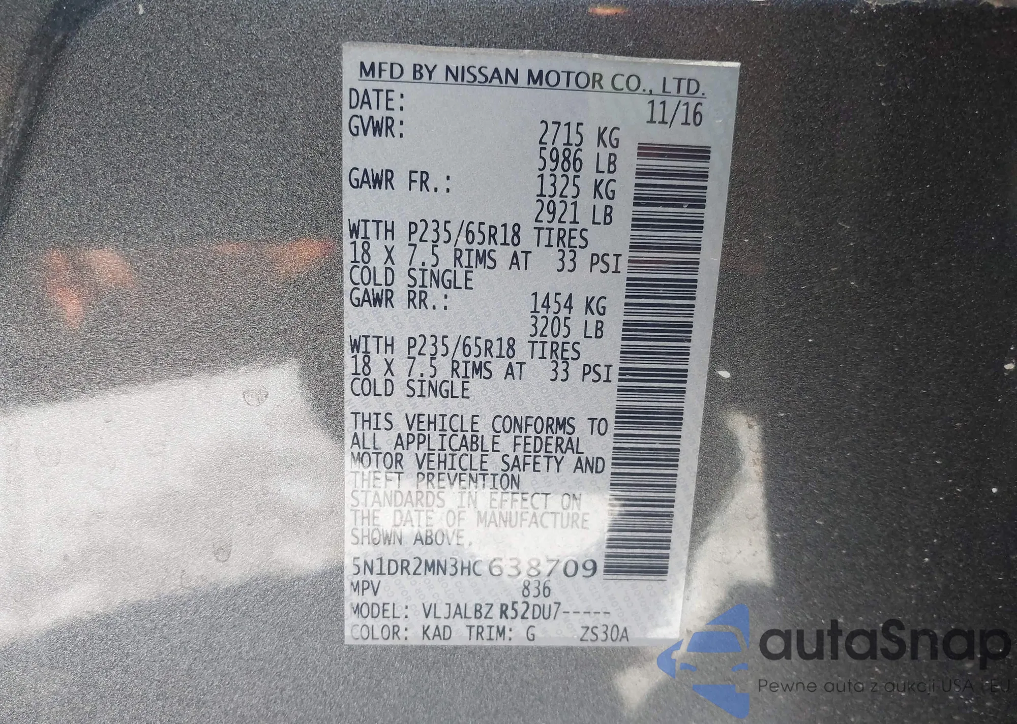 VIN: 5N1DR2MN3HC638709