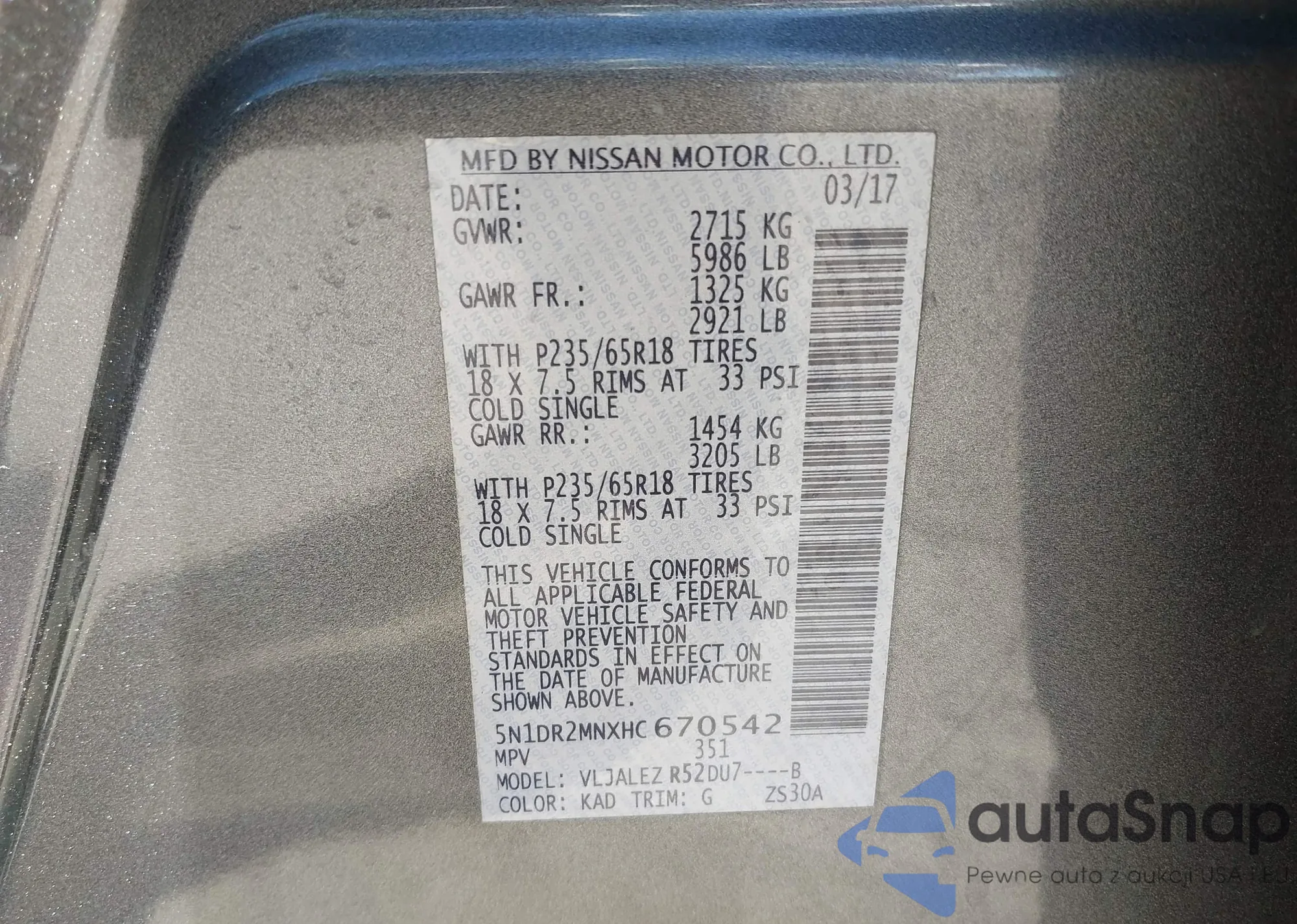 Автомобиль Nissan Pathfinder 2017 (VIN 5N1DR2MNXHC670542) ранее не участвовал в торгах. Документы чистые, пробег соответствует или ниже среднего по рынку. Продаётся страховой компанией — рекомендуем покупку. Доставка в порт займет около 6–8 недель.