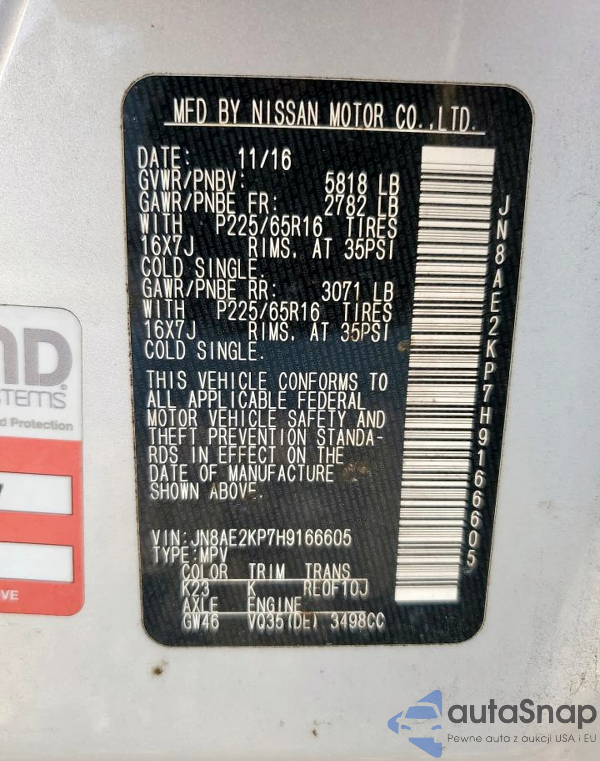 Автомобиль Nissan Quest 2017 (VIN JN8AE2KP7H9166605) продаётся непроверенным продавцом. Рекомендуем проверить отчет Carfax и подтвердить возможность регистрации перед покупкой.