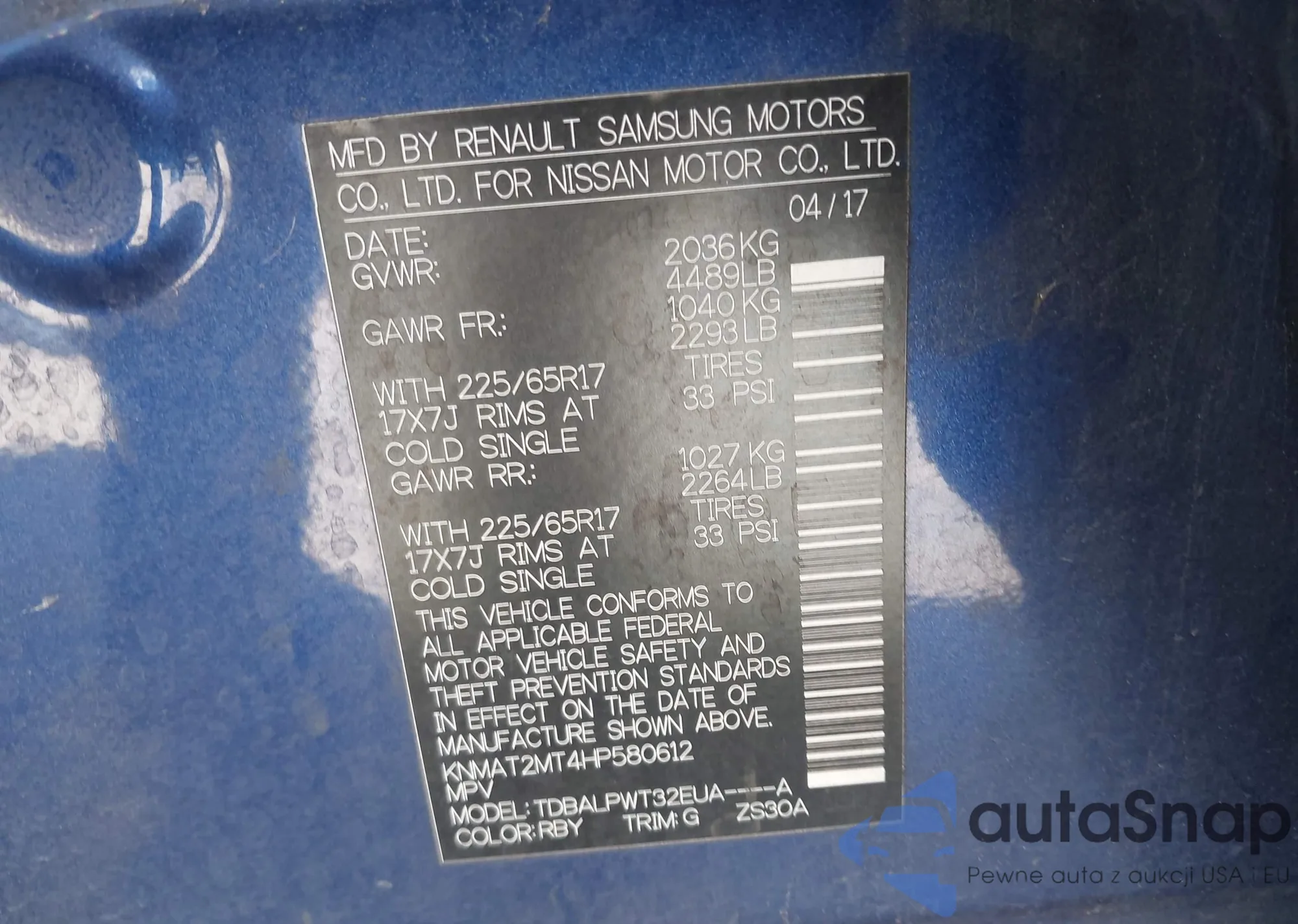 VIN: KNMAT2MT4HP580612