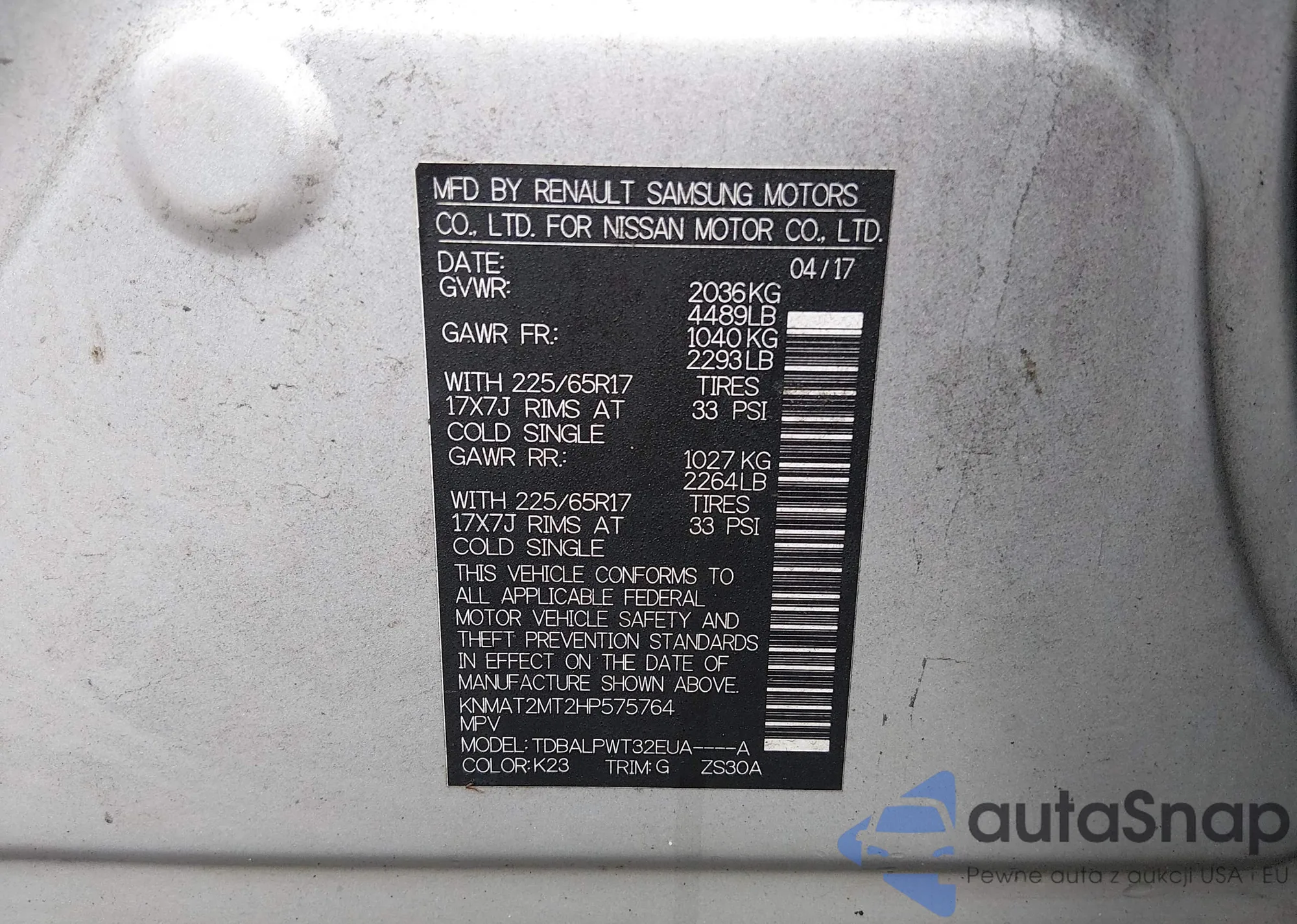 VIN: KNMAT2MT2HP575764