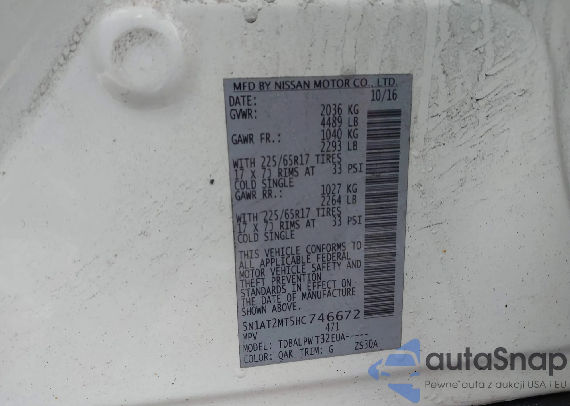 Автомобиль Nissan Rogue 2017 (VIN 5N1AT2MT5HC746672) ранее не участвовал в торгах. Документы чистые, пробег соответствует или ниже среднего по рынку. Продаётся страховой компанией — рекомендуем покупку. Доставка в порт займет около 6–8 недель.
