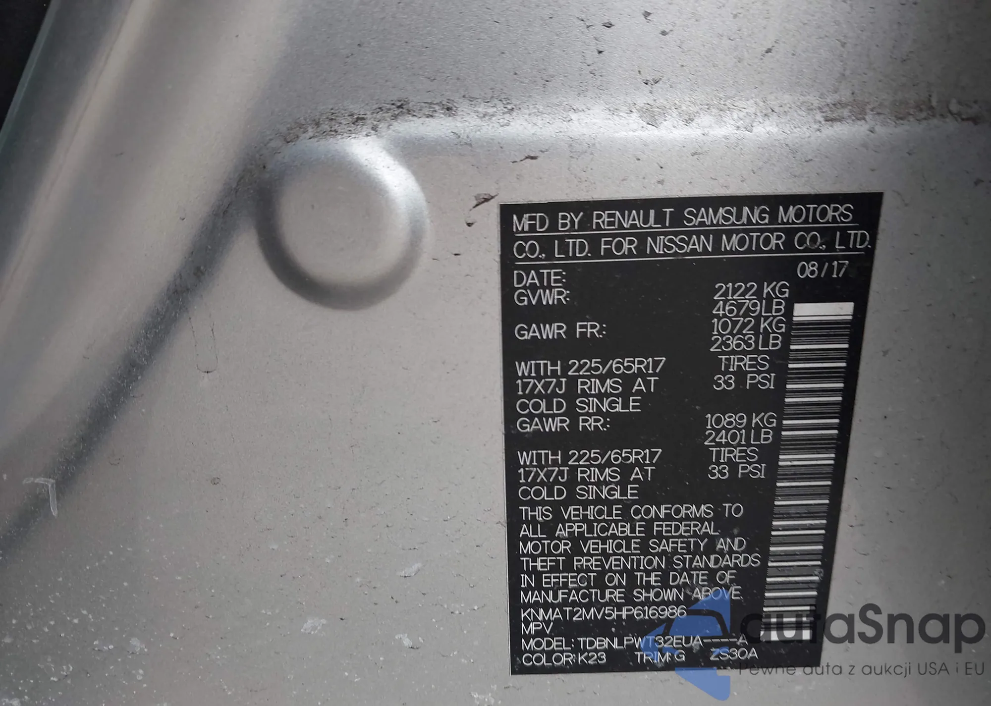 Автомобиль Nissan Rogue 2017 (VIN KNMAT2MV5HP616986) ранее не участвовал в торгах. Документы чистые, пробег соответствует или ниже среднего по рынку. Продаётся страховой компанией — рекомендуем покупку. Доставка в порт займет около 6–8 недель.
