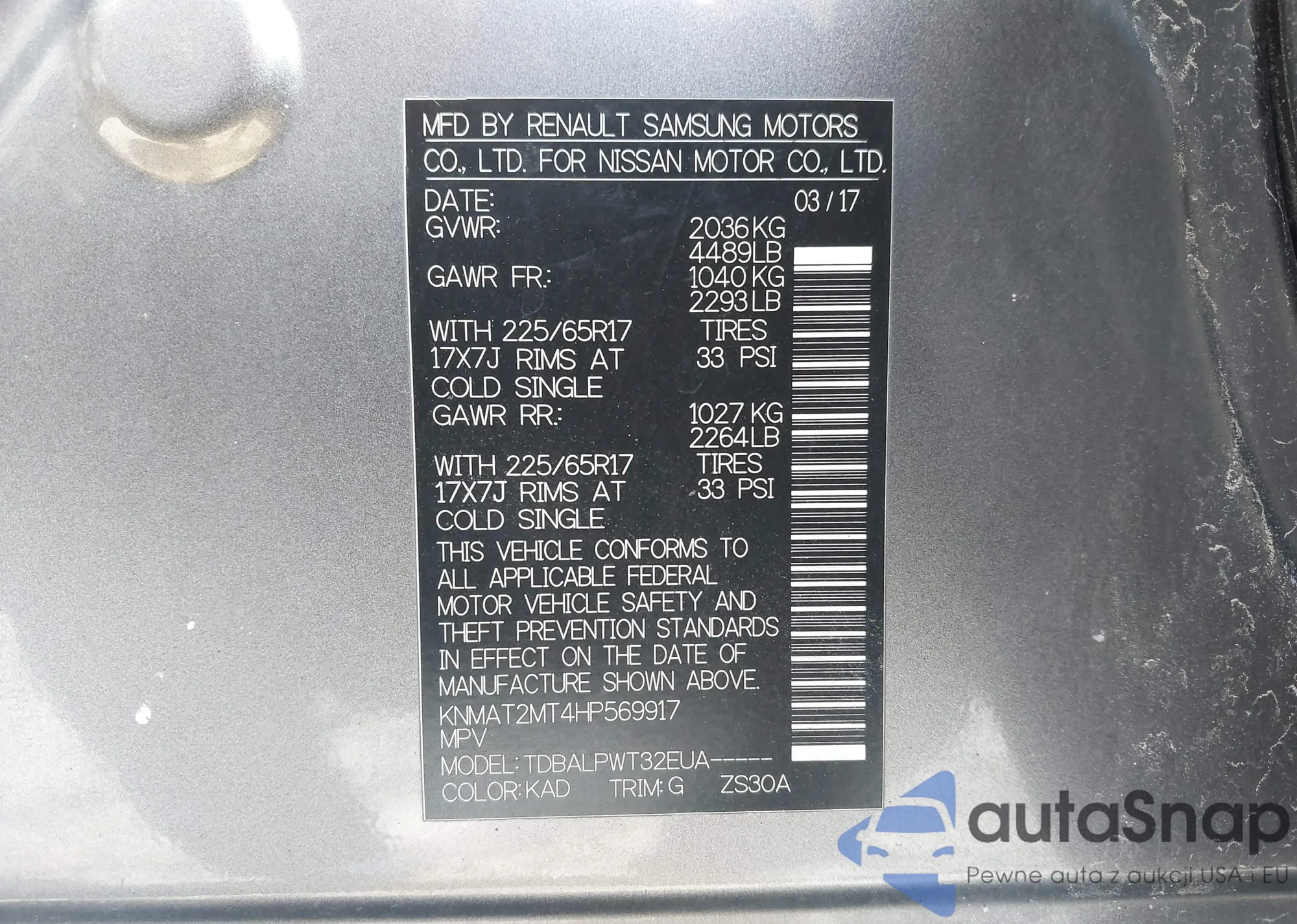 VIN: KNMAT2MT4HP569917