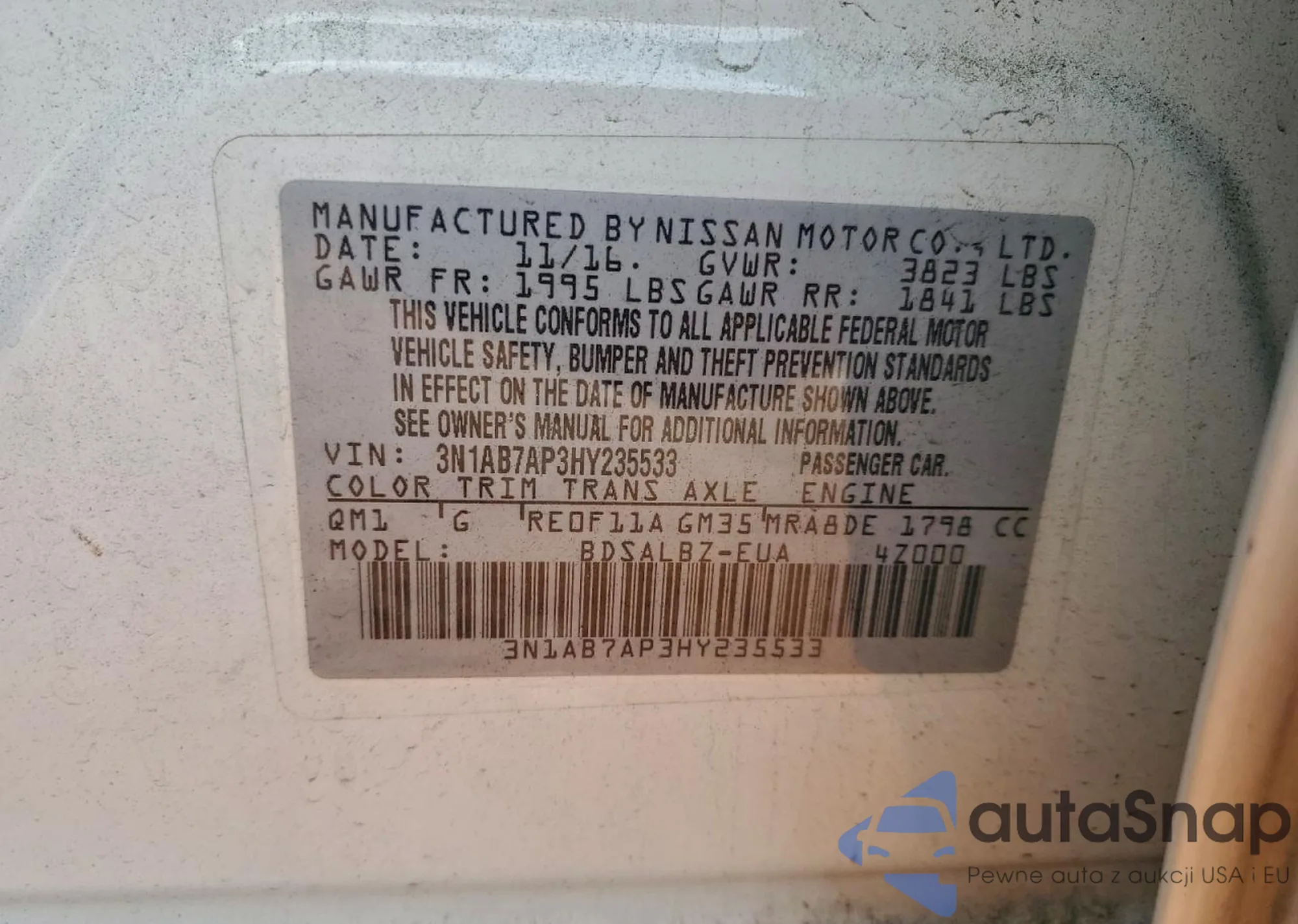 VIN: 3N1AB7AP3HY235533