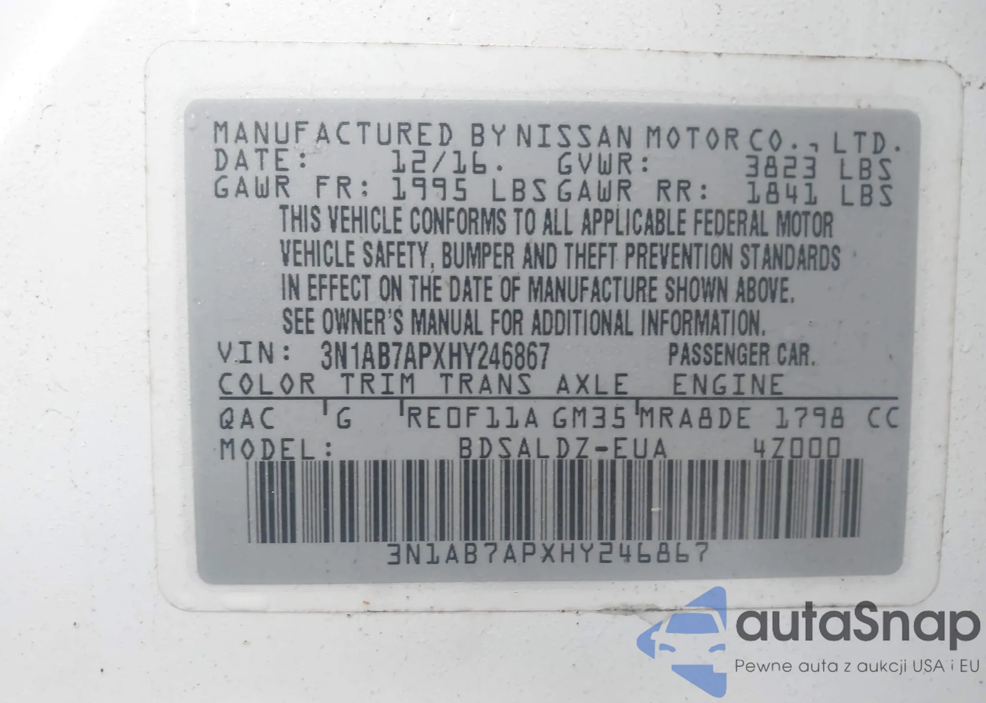 Автомобиль Nissan Sentra 2017 (VIN 3N1AB7APXHY246867) уже участвовал в торгах 1 раз(а) и/или продаётся непроверенным продавцом. Рекомендуем проверить отчет Carfax и подтвердить возможность регистрации перед покупкой.