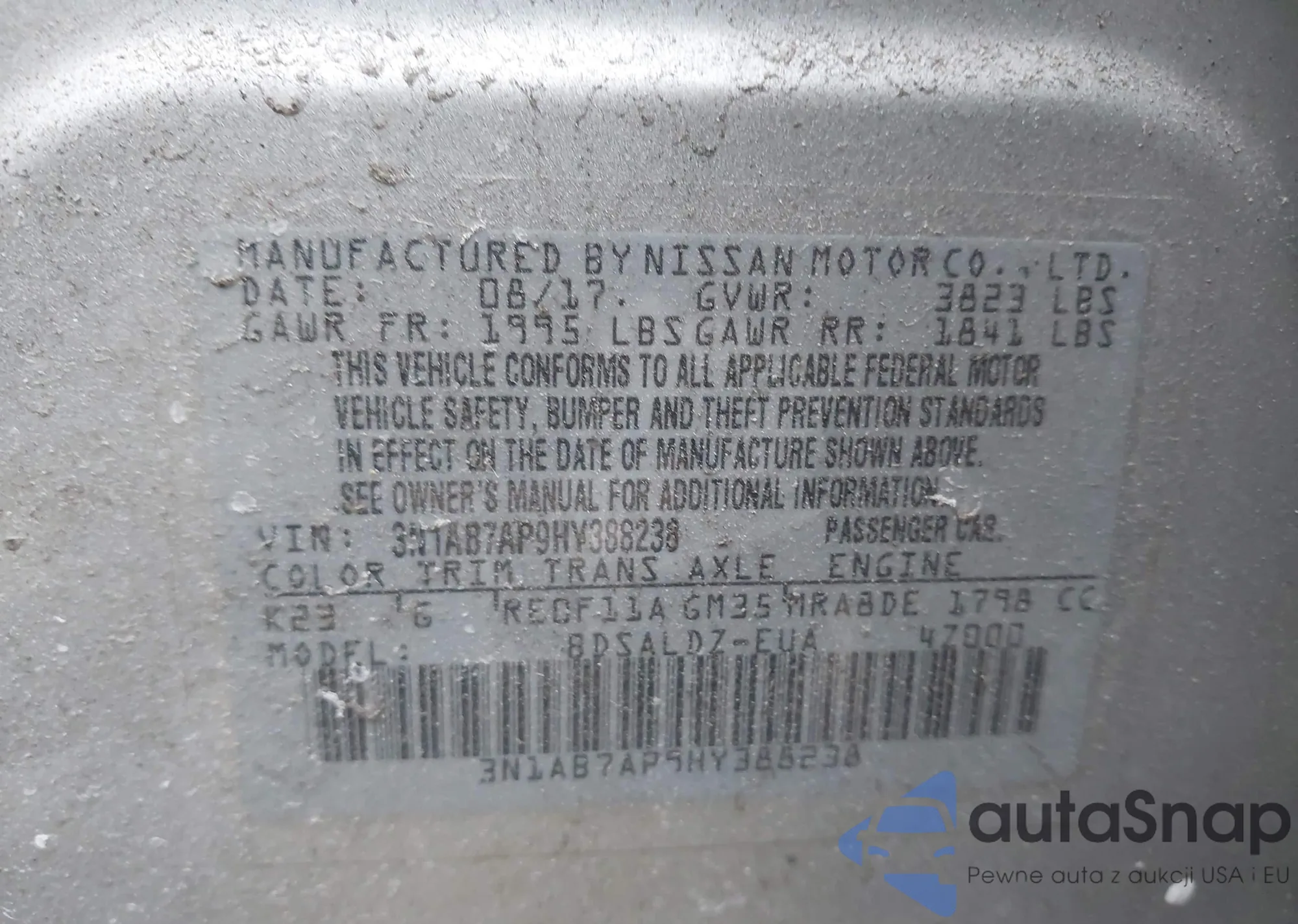 VIN: 3N1AB7AP9HY388238