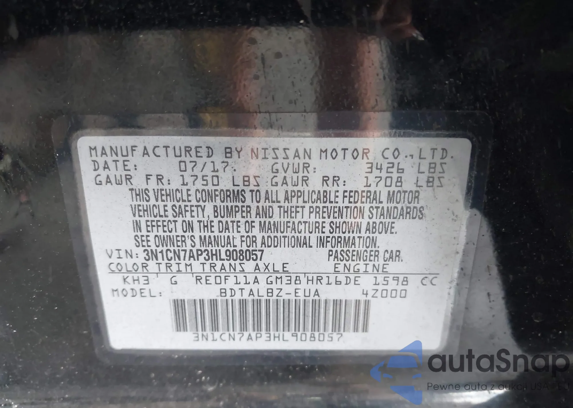 VIN: 3N1CN7AP3HL908057