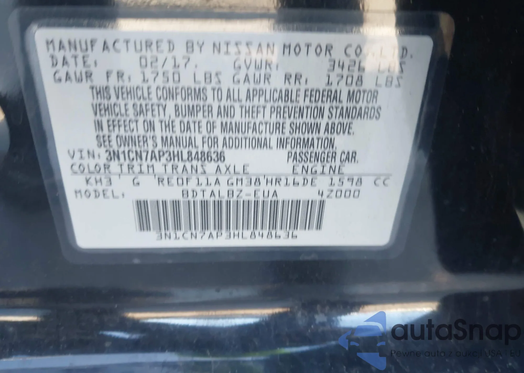 Автомобиль Nissan Versa 2017 (VIN 3N1CN7AP3HL848636) уже участвовал в торгах 1 раз(а) и/или продаётся непроверенным продавцом. Рекомендуем проверить отчет Carfax и подтвердить возможность регистрации перед покупкой.