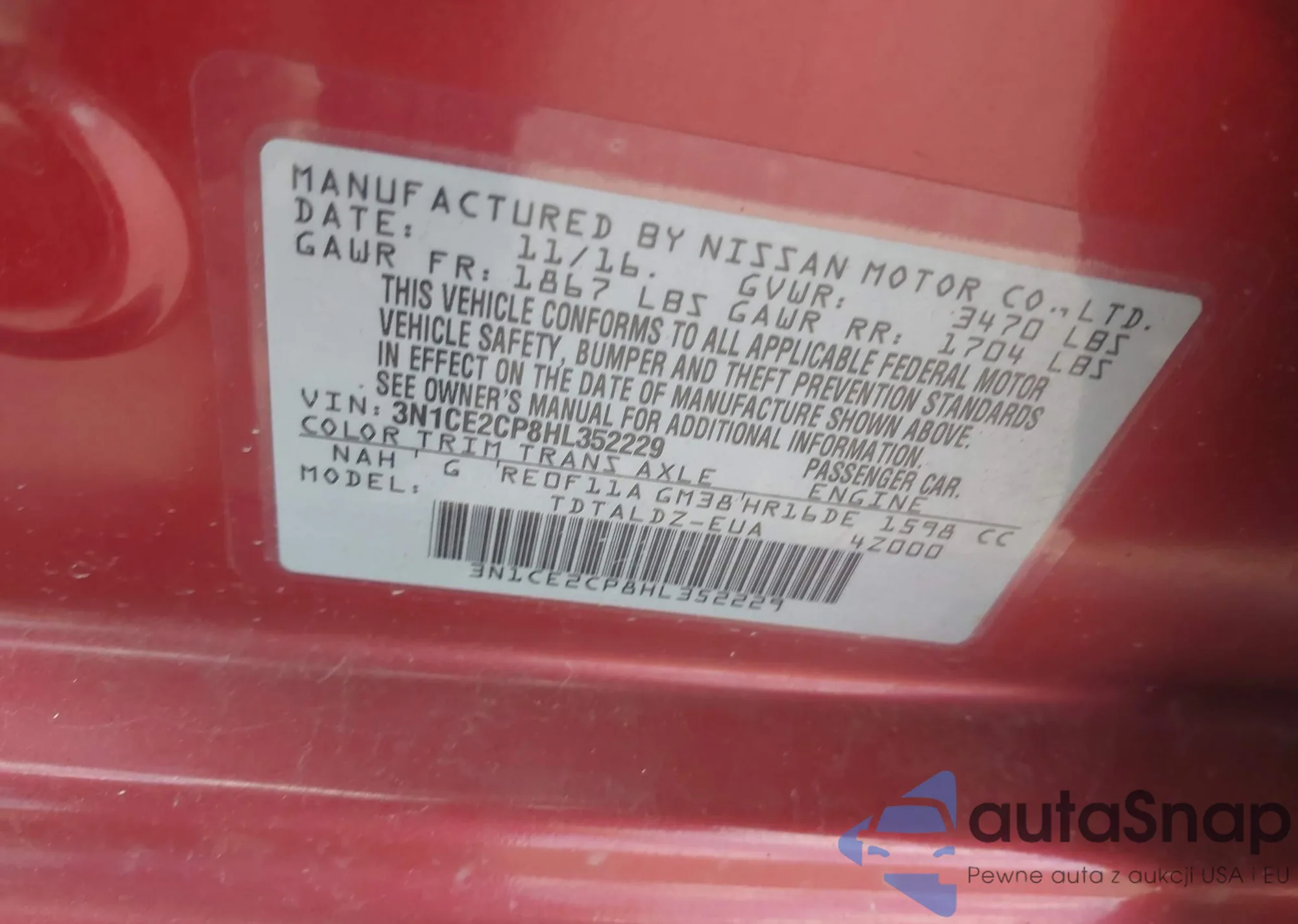 VIN: 3N1CE2CP8HL352229