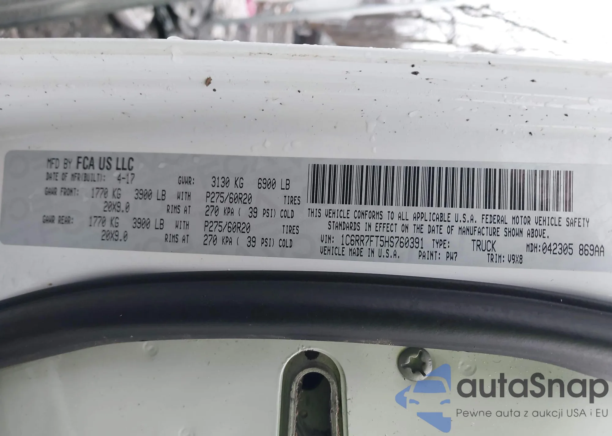 VIN: 1C6RR7FT5HS760391