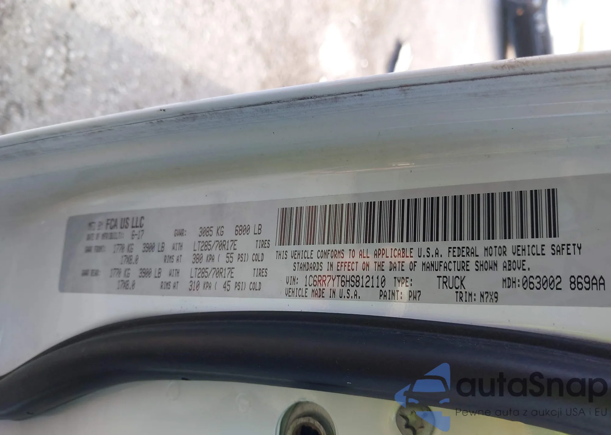 VIN: 1C6RR7YT6HS812110