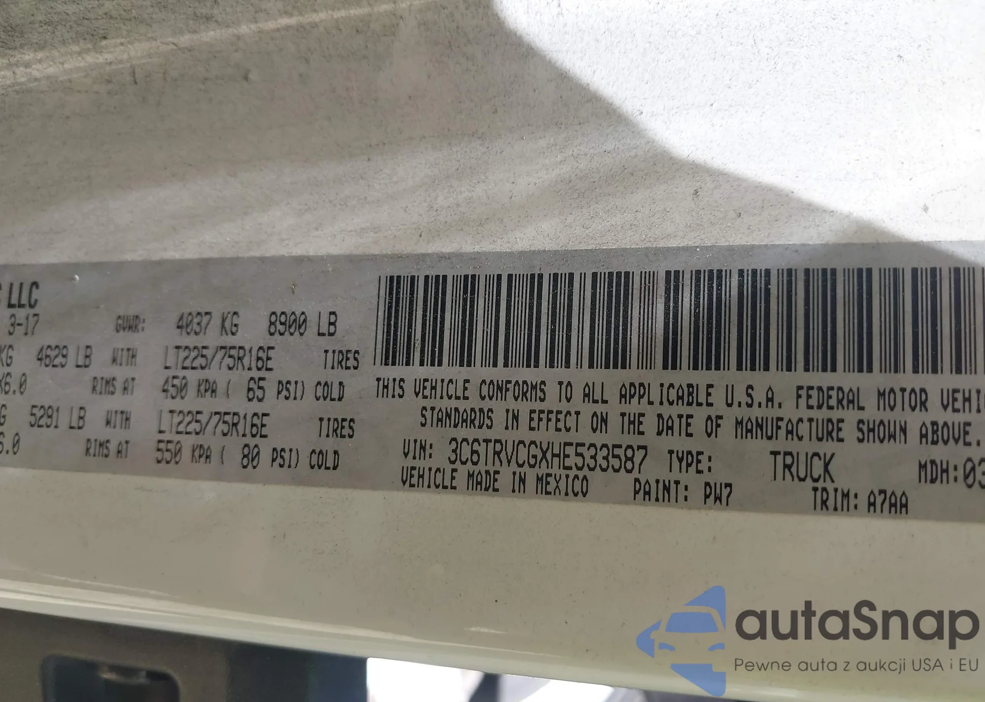 VIN: 3C6TRVCGXHE533587