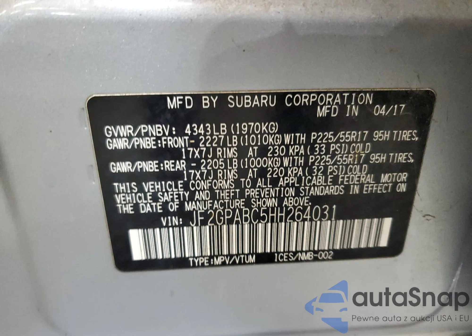 VIN: JF2GPABC5HH264031