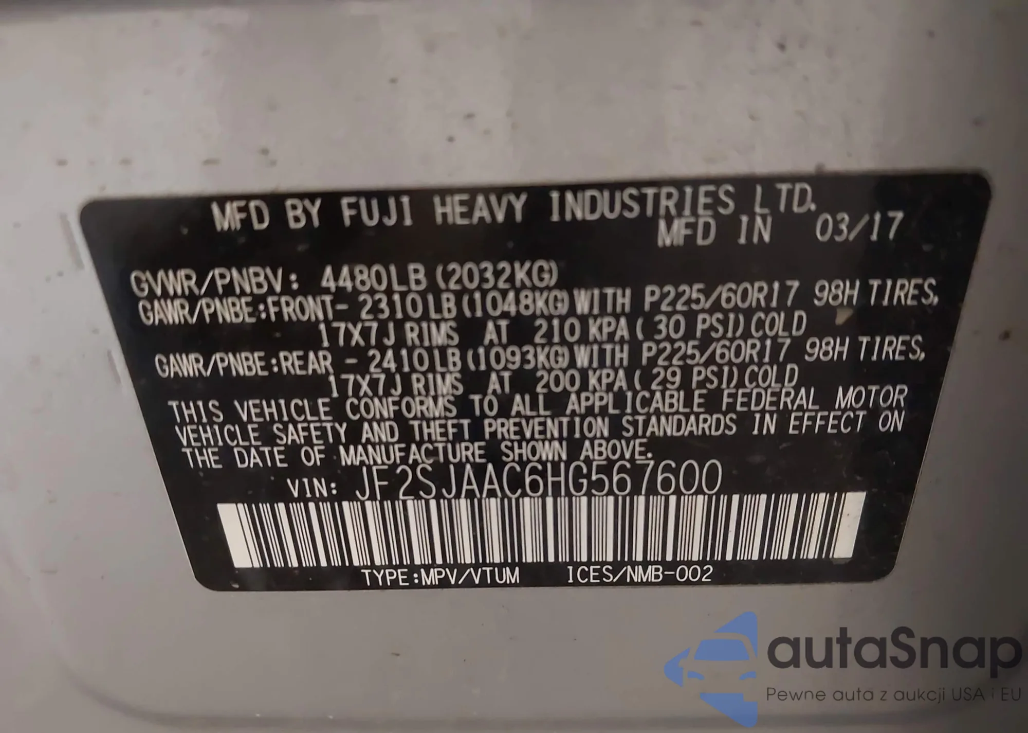 VIN: JF2SJAAC6HG567600