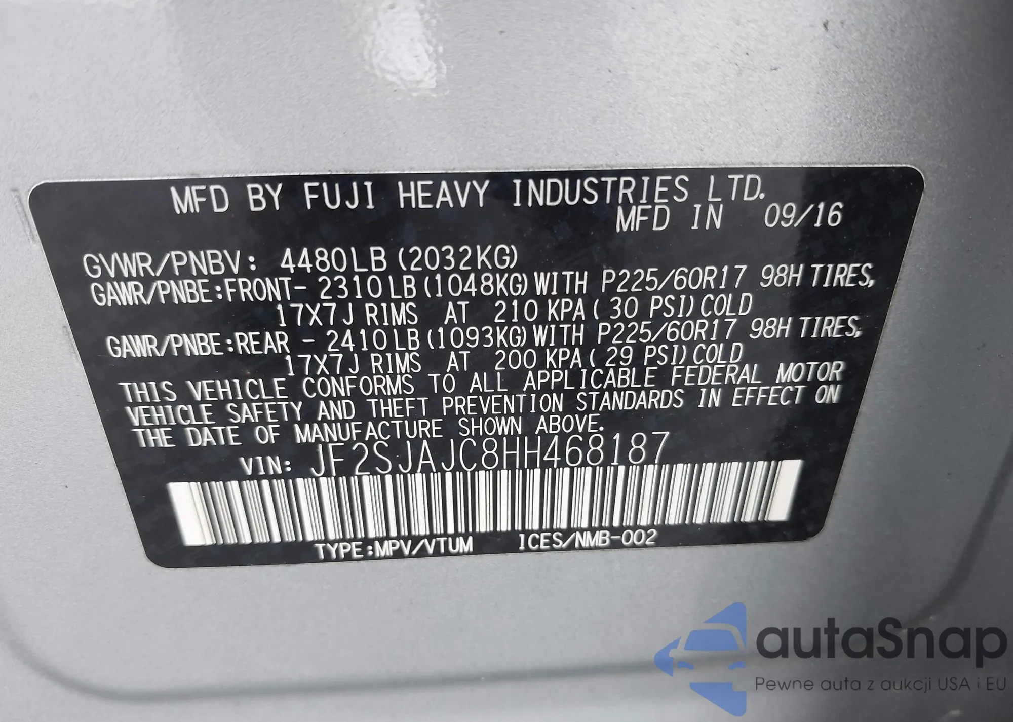 VIN: JF2SJAJC8HH468187