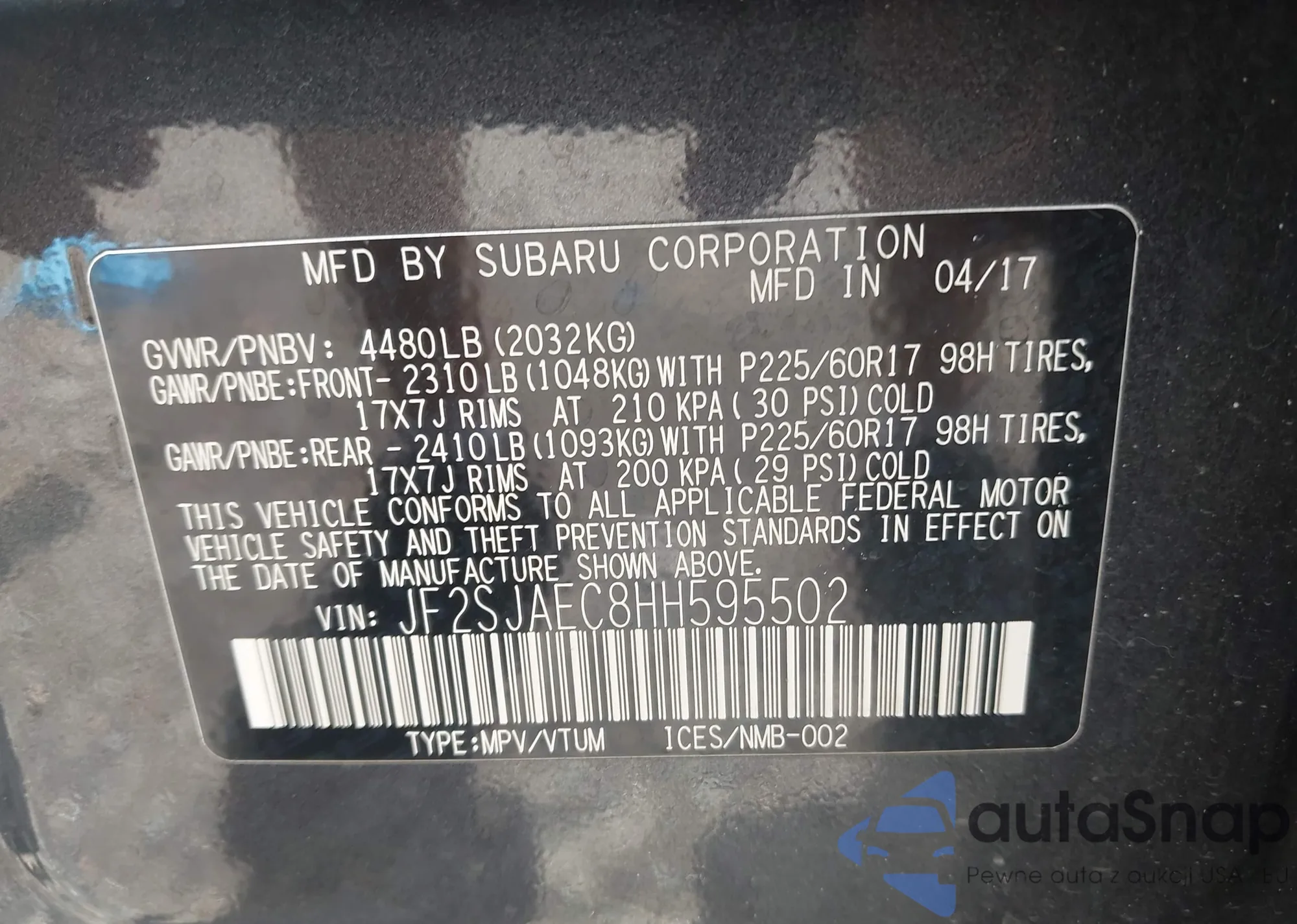 VIN: JF2SJAEC8HH595502