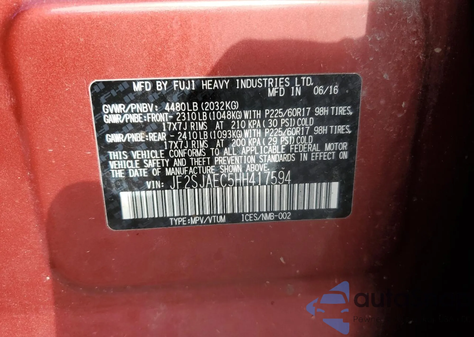 VIN: JF2SJAEC5HH417594