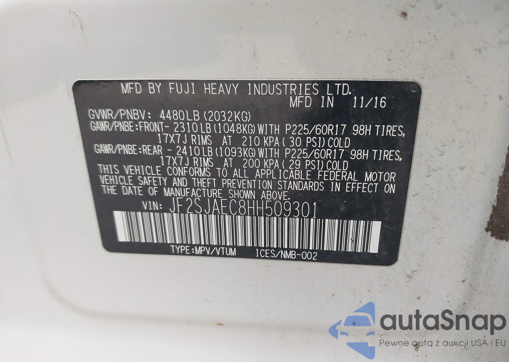 VIN: JF2SJAEC8HH509301