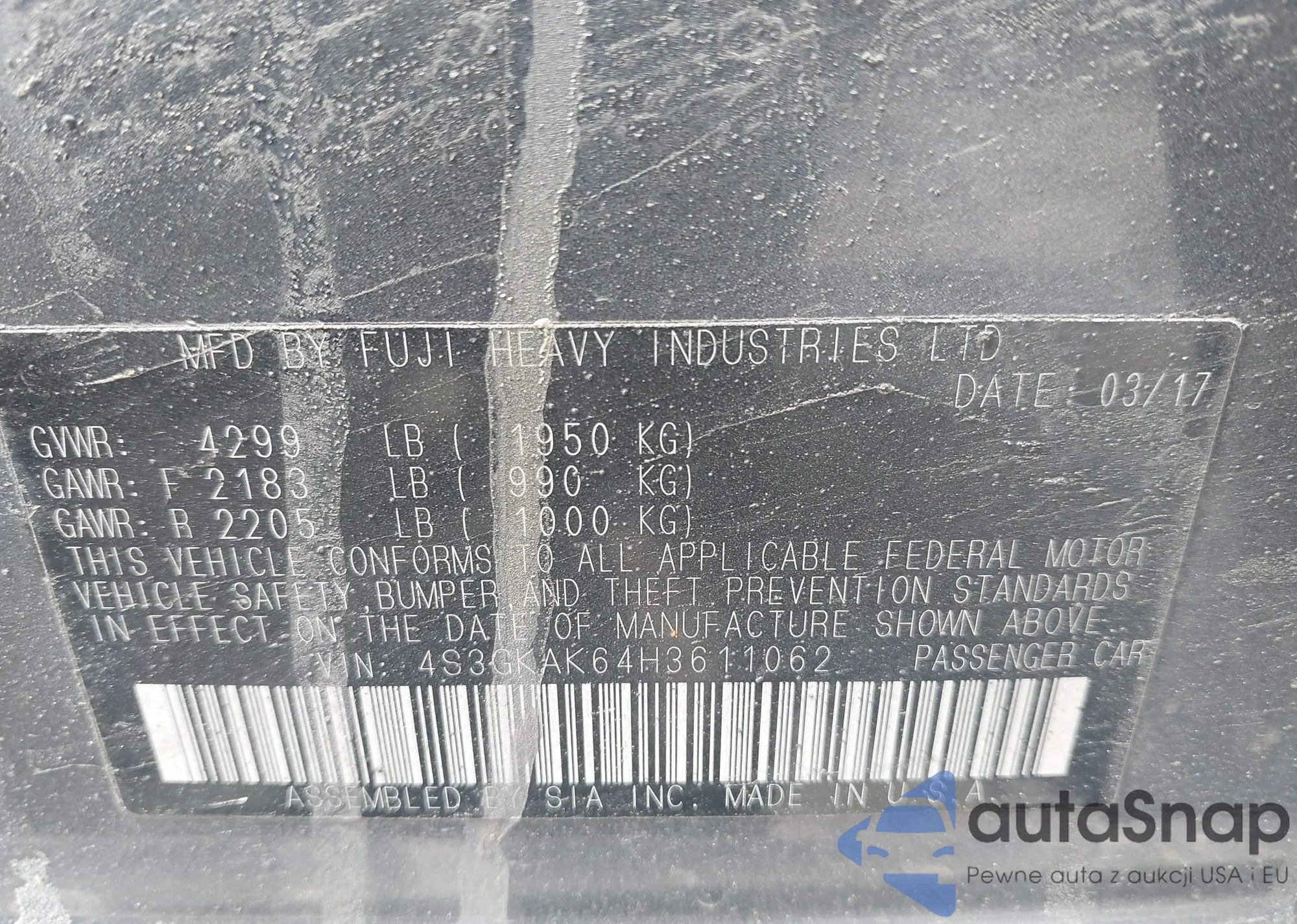 VIN: 4S3GKAK64H3611062