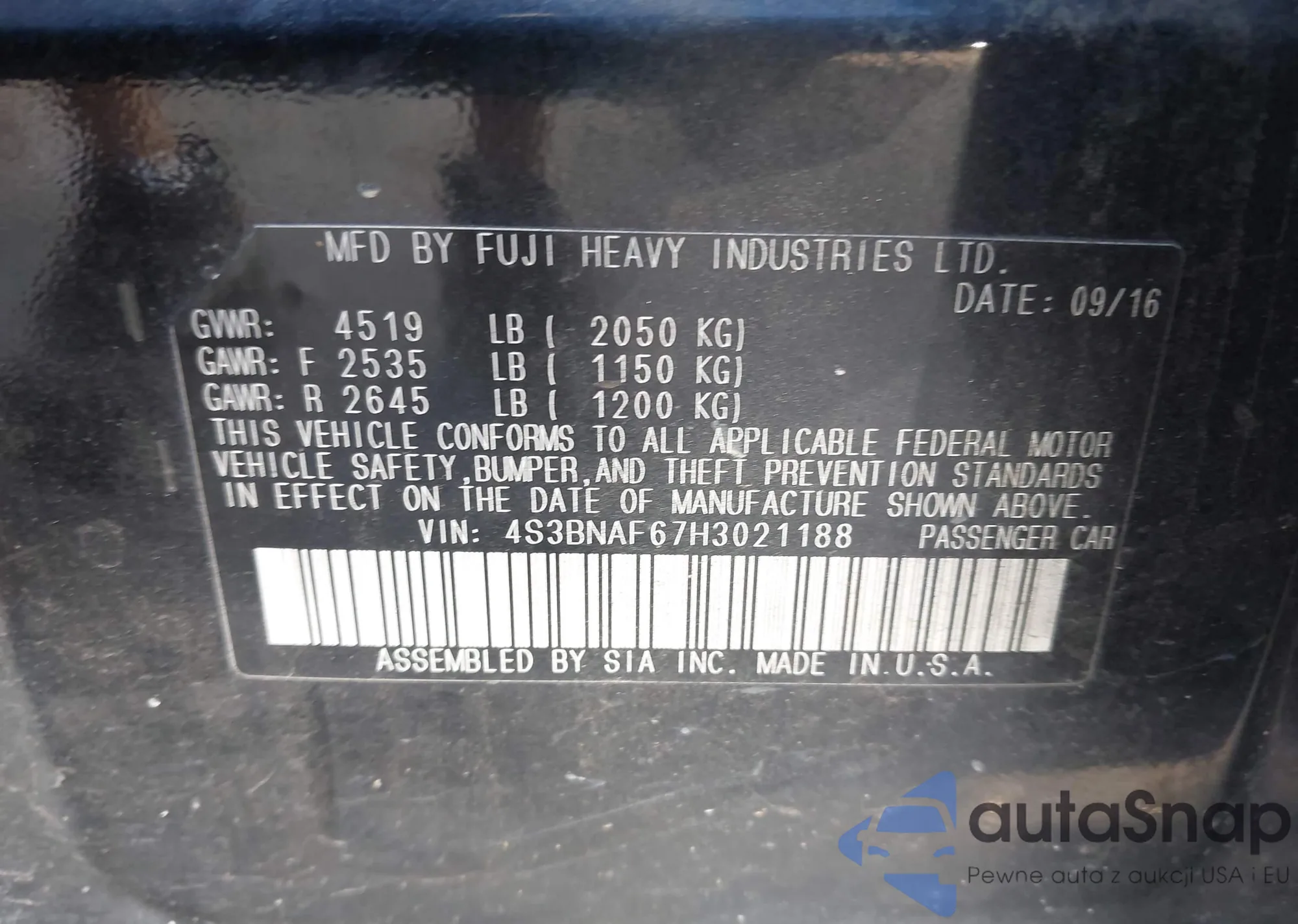 VIN: 4S3BNAF67H3021188