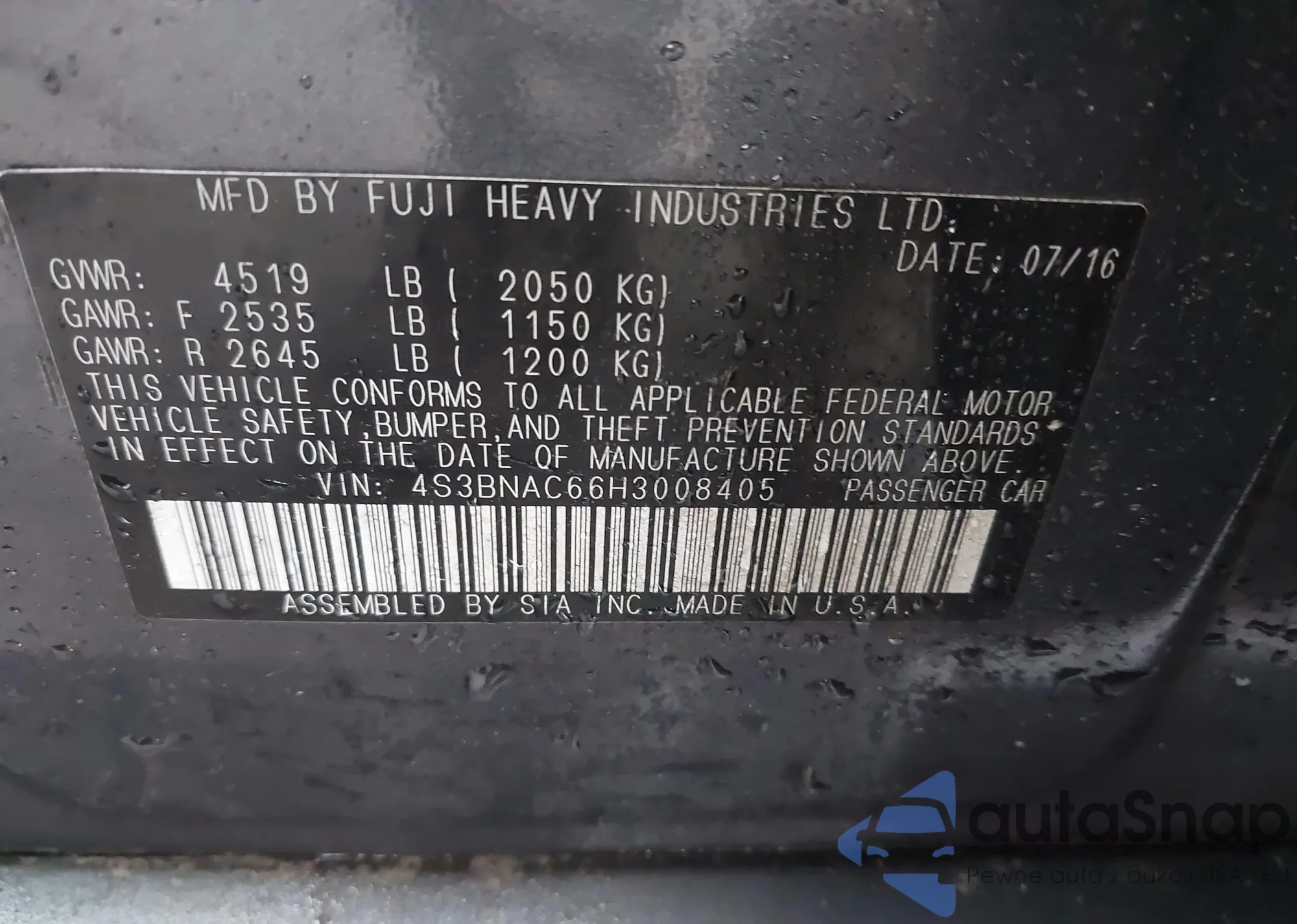 Автомобиль Subaru Legacy 2017 (VIN 4S3BNAC66H3008405) ранее не участвовал в торгах. Документы чистые, пробег соответствует или ниже среднего по рынку. Продаётся страховой компанией — рекомендуем покупку. Доставка в порт займет около 6–8 недель.