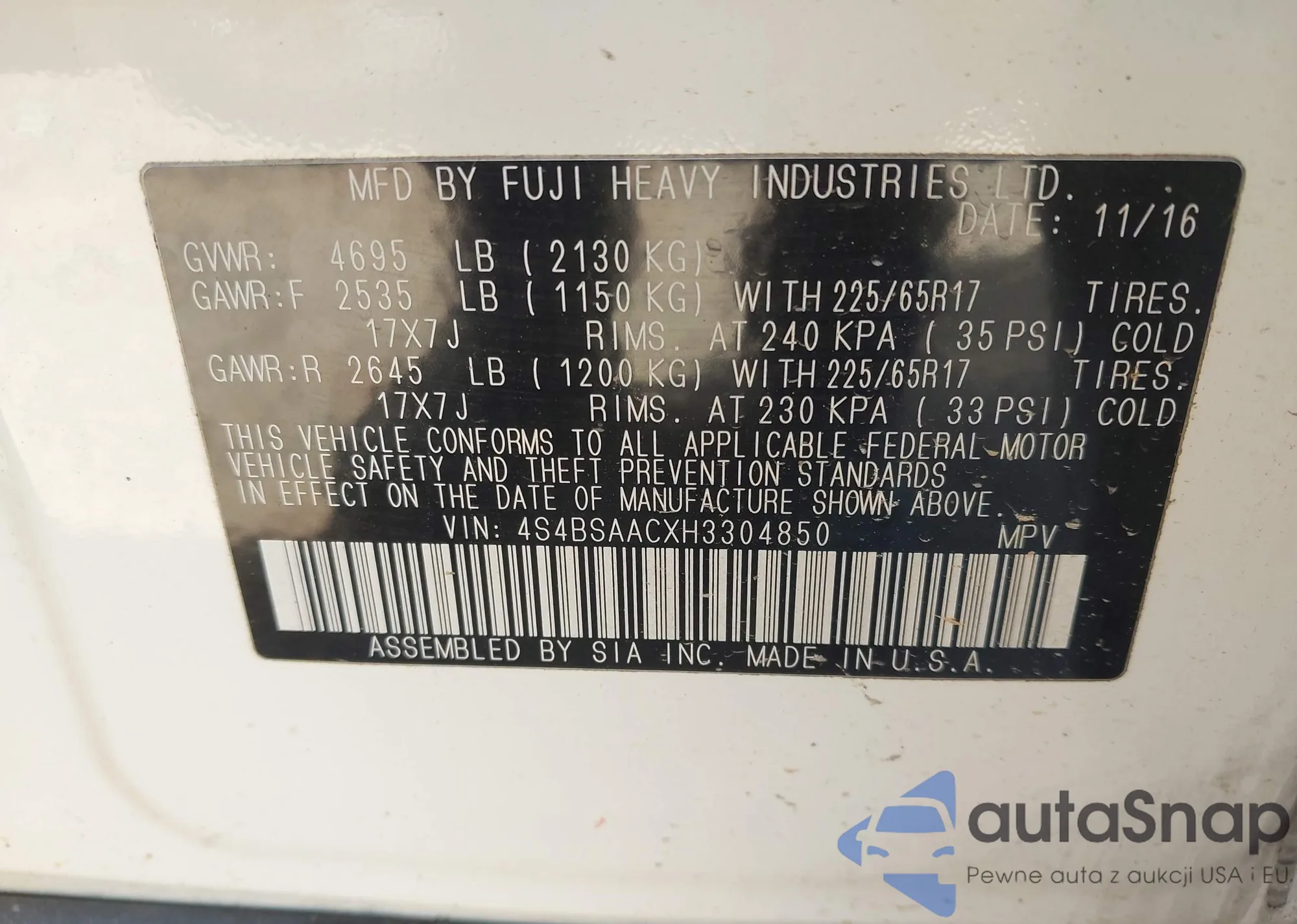VIN: 4S4BSAACXH3304850