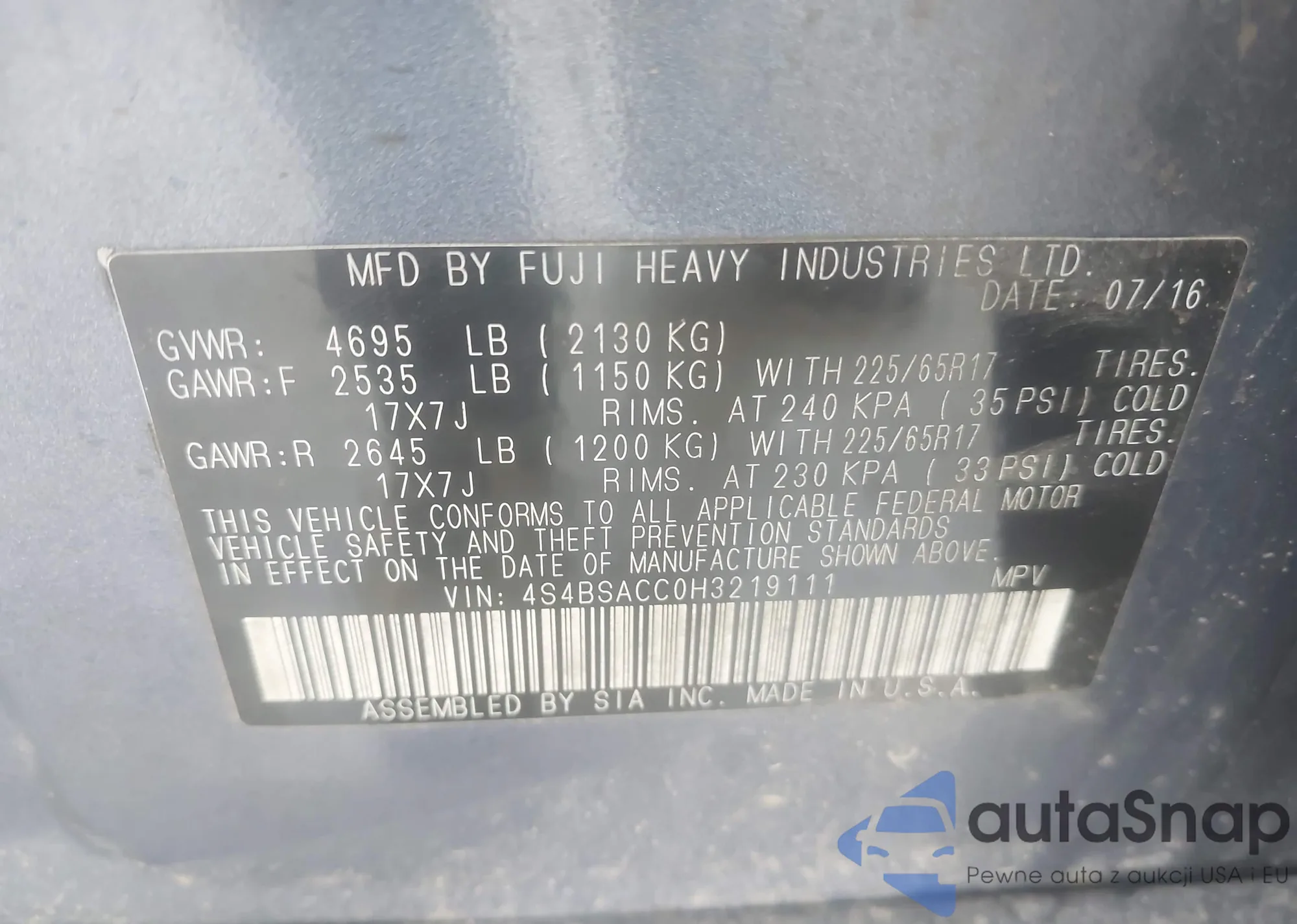 VIN: 4S4BSACC0H3219111
