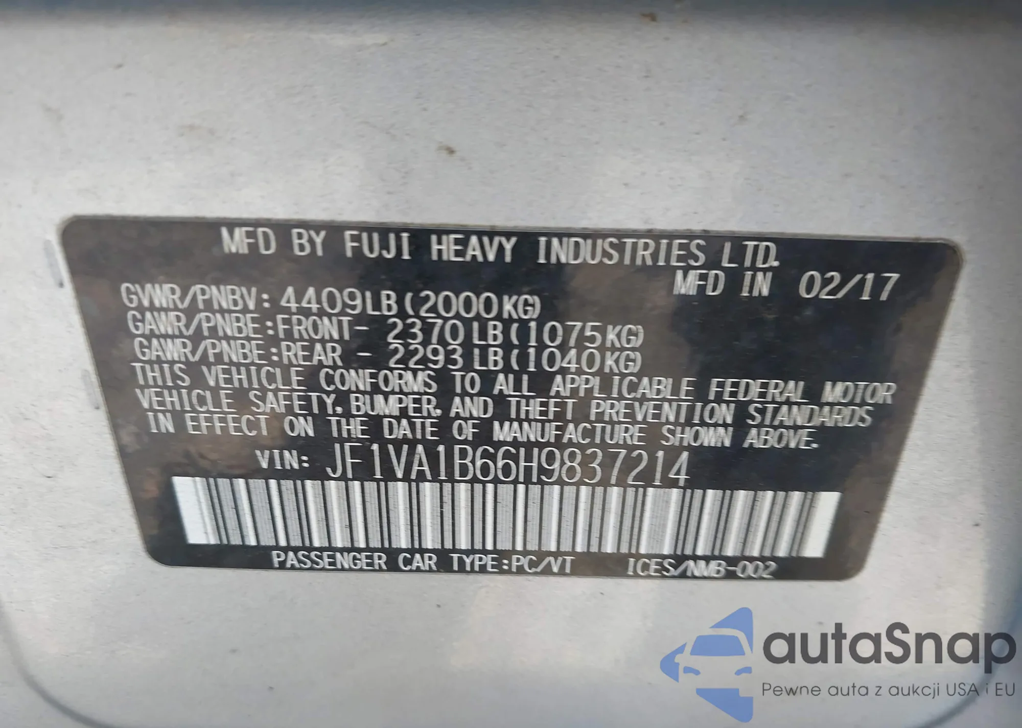 VIN: JF1VA1B66H9837214