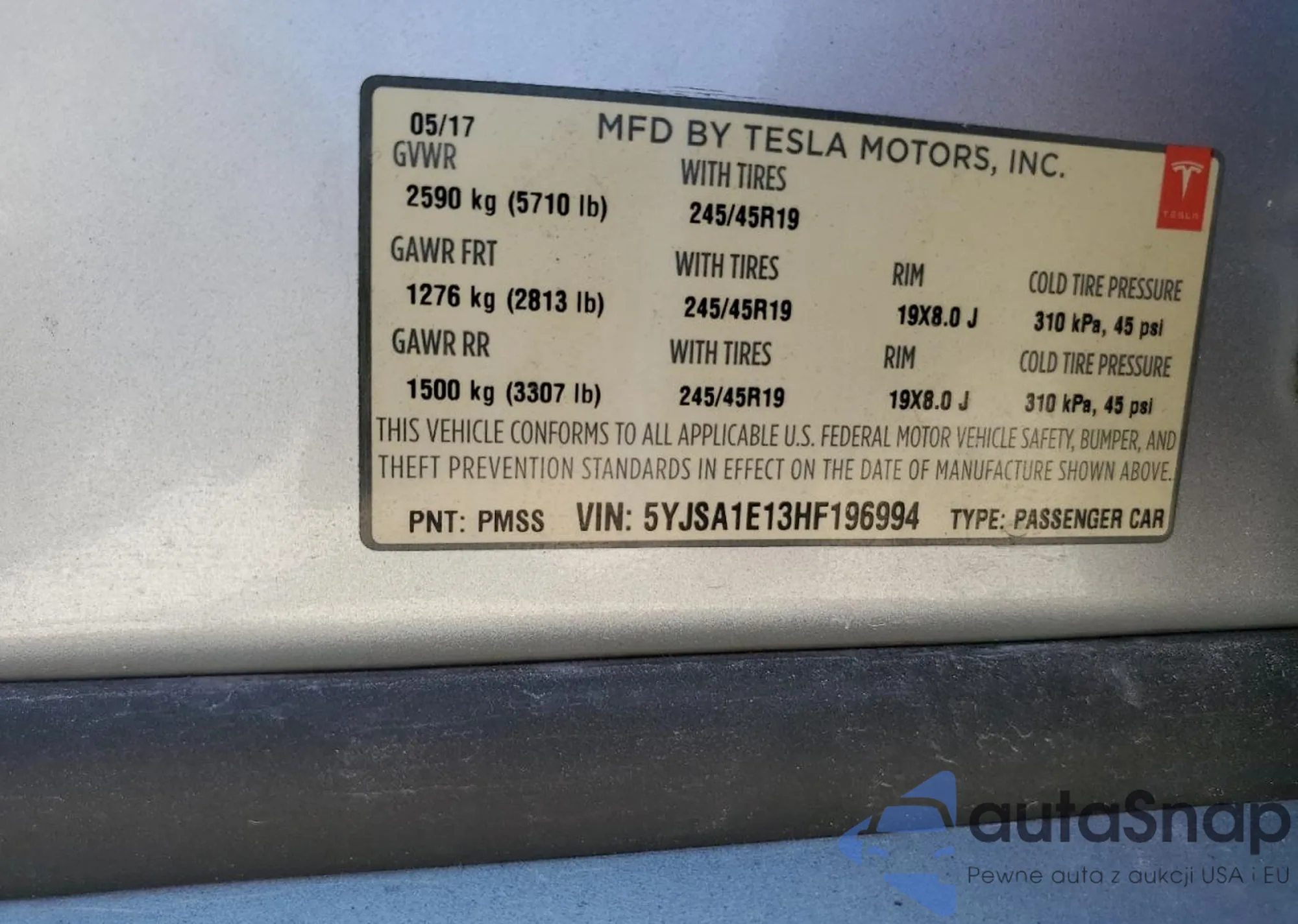 VIN: 5YJSA1E13HF196994