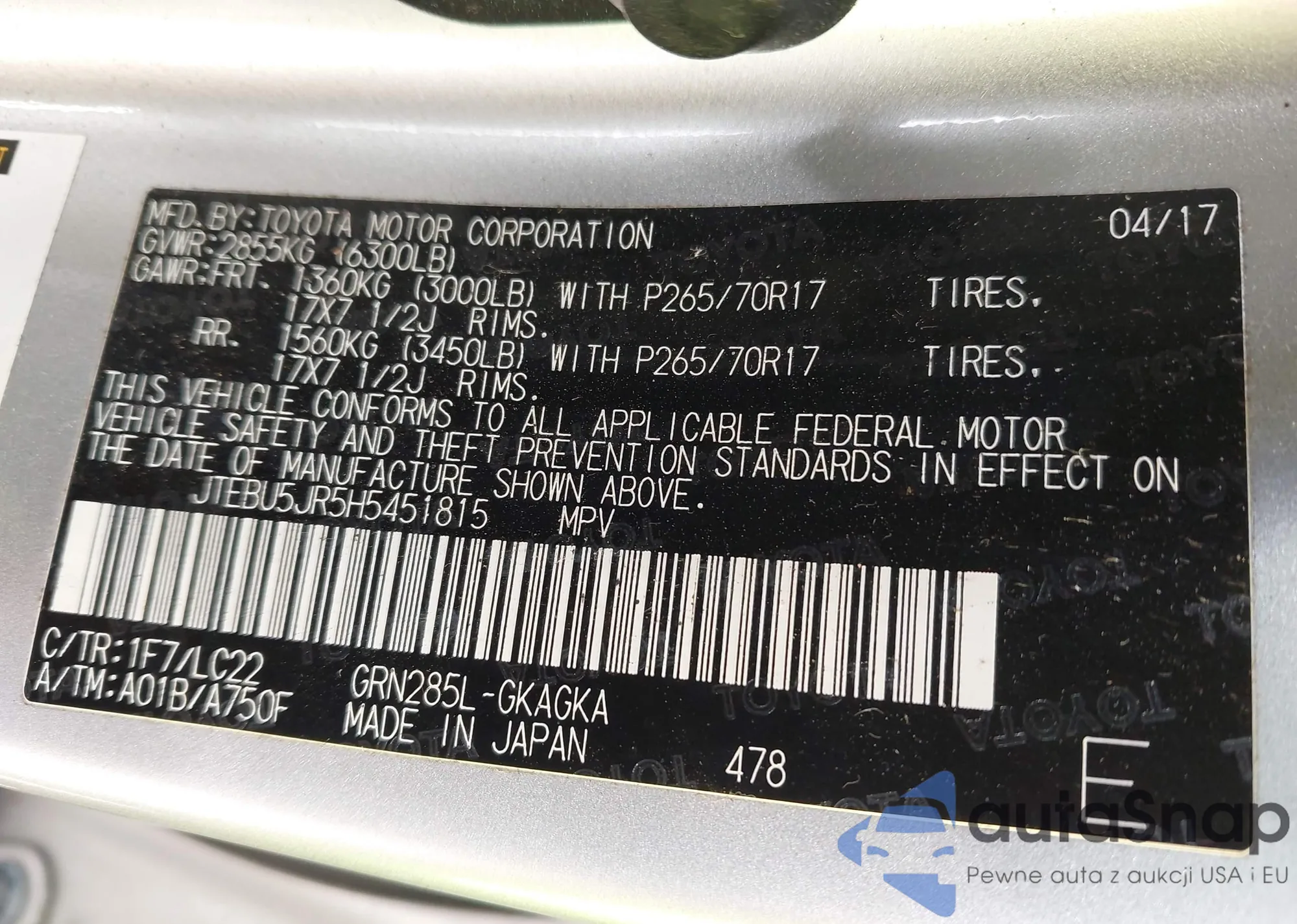 VIN: JTEBU5JR5H5451815