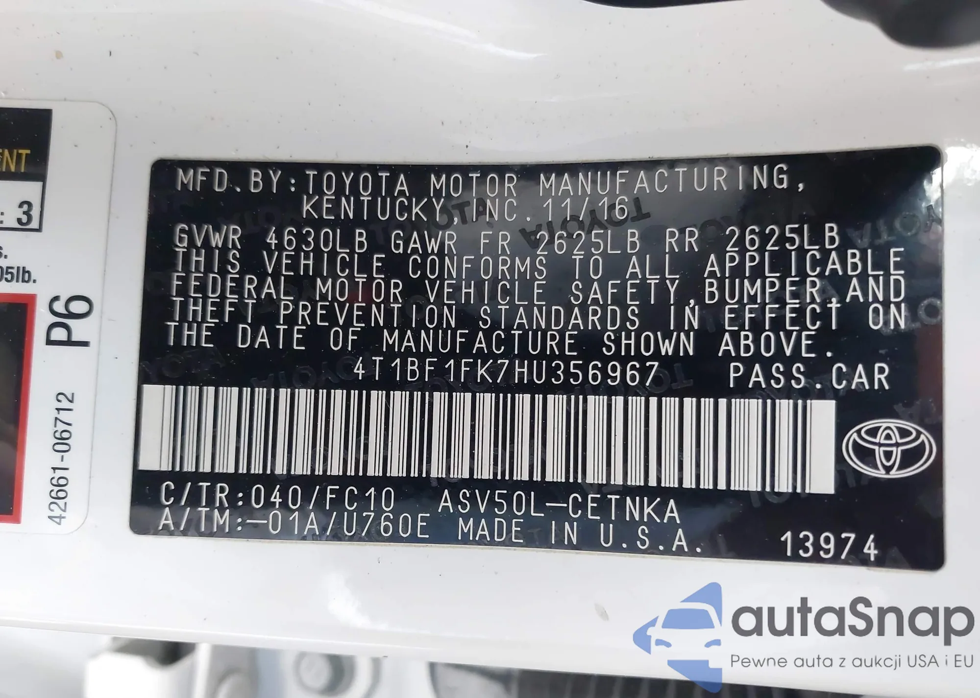 VIN: 4T1BF1FK7HU356967