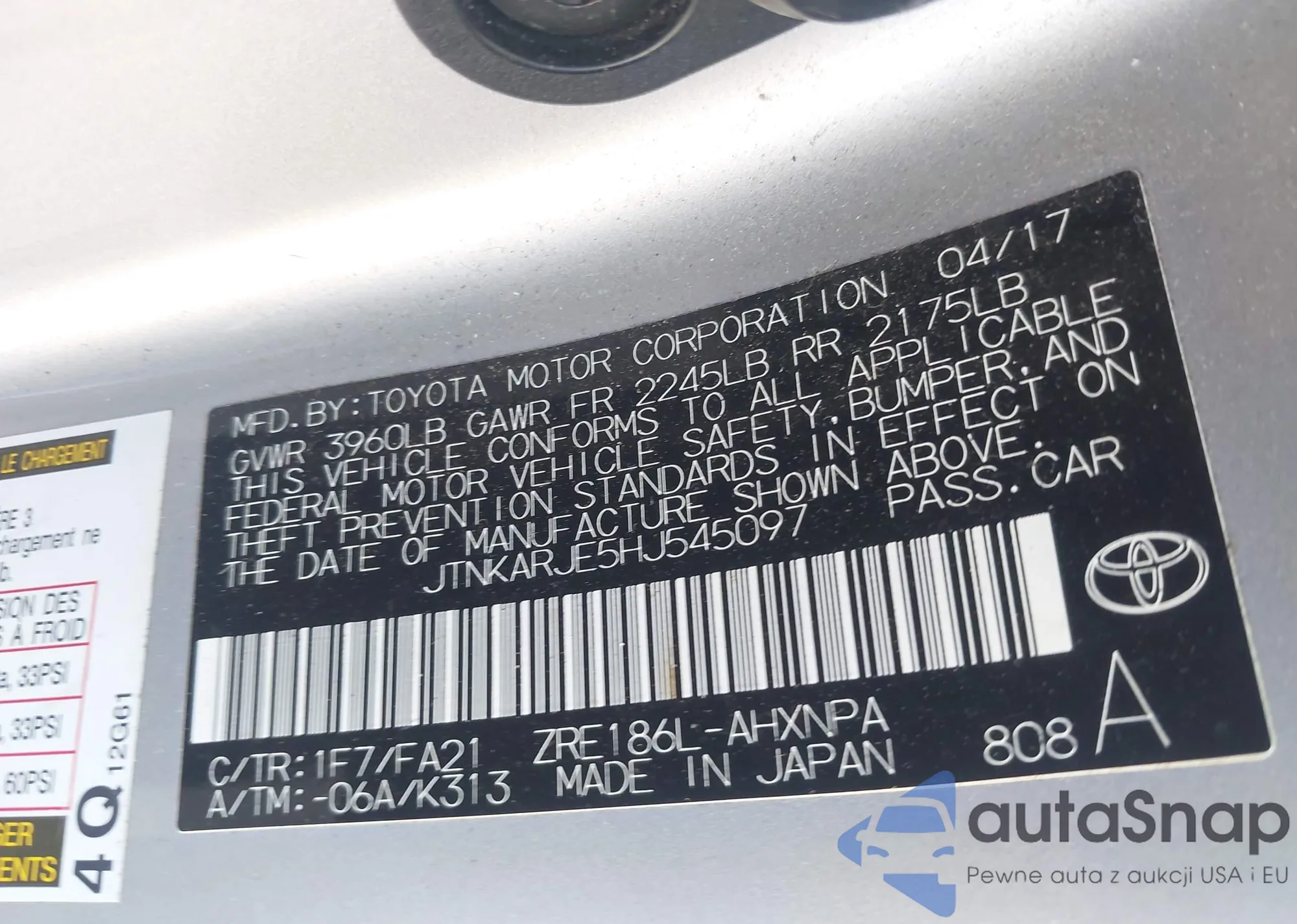 VIN: JTNKARJE5HJ545097