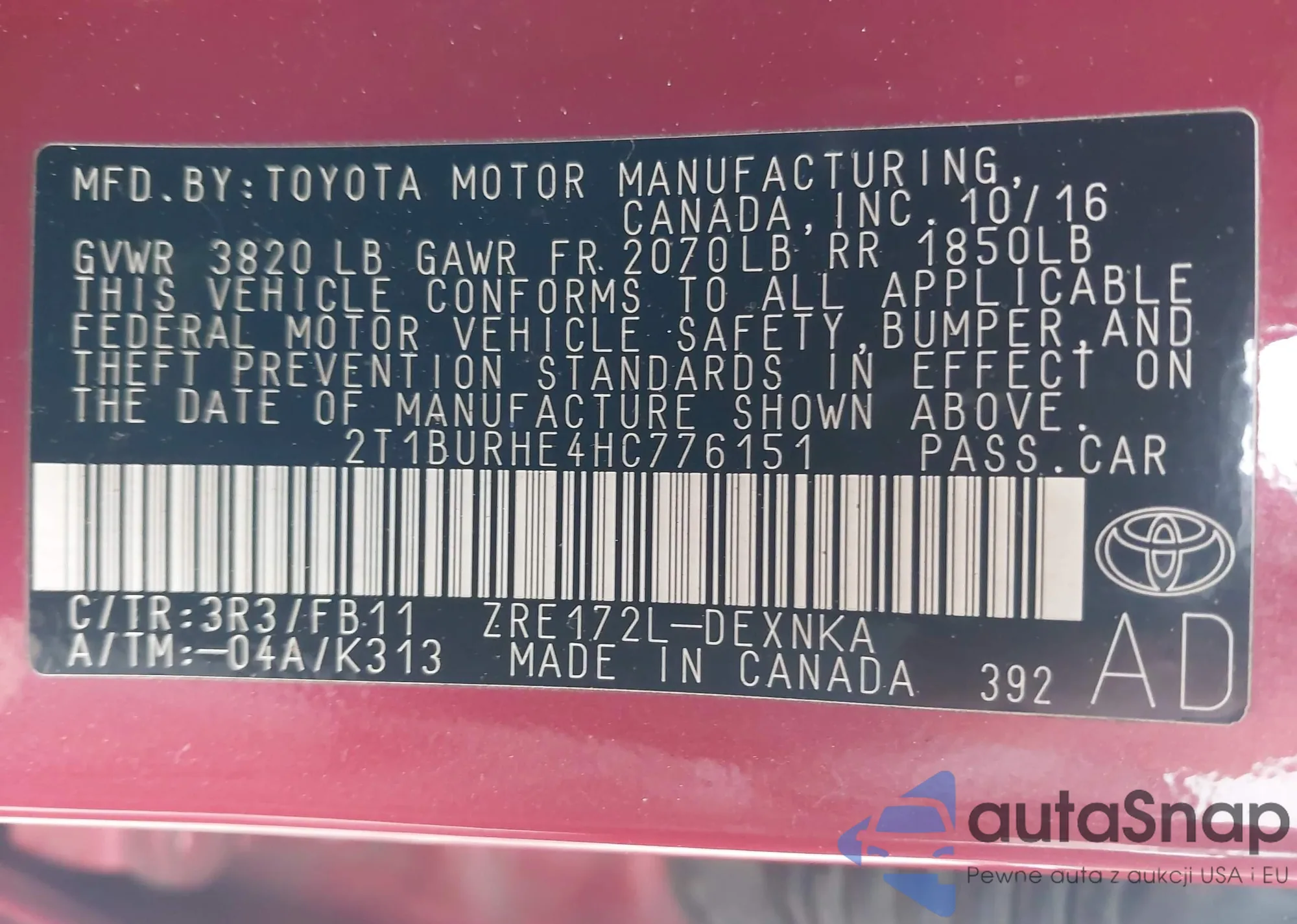 Автомобиль Toyota Corolla 2017 (VIN 2T1BURHE4HC776151) ранее не участвовал в торгах. Документы чистые, пробег соответствует или ниже среднего по рынку. Продаётся страховой компанией — рекомендуем покупку. Доставка в порт займет около 6–8 недель.
