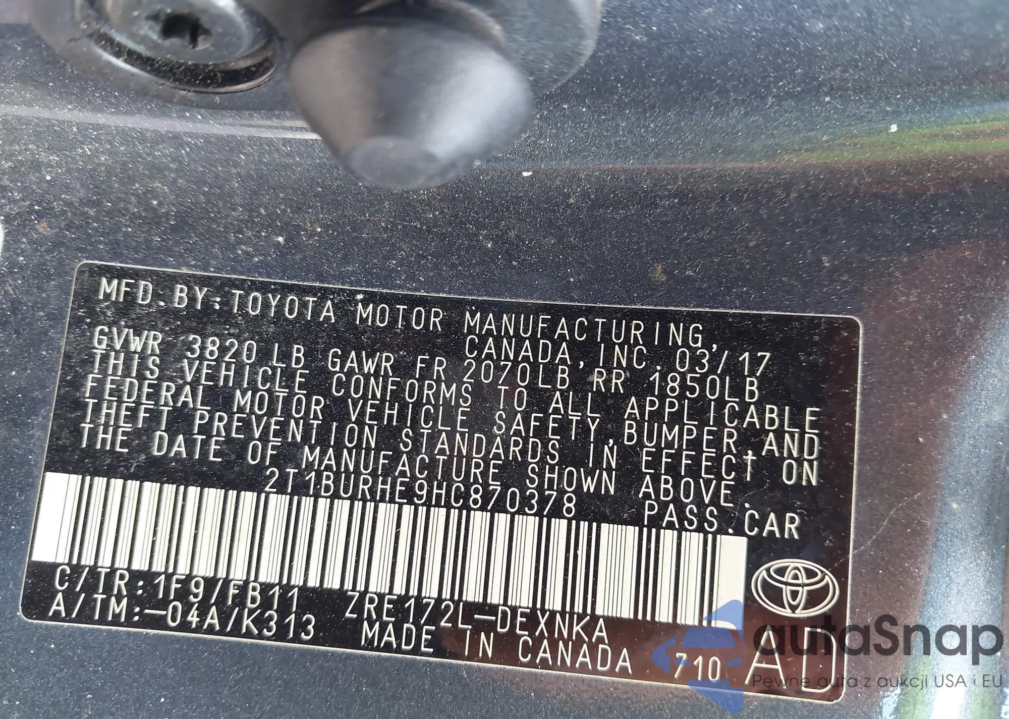 VIN: 2T1BURHE9HC870378