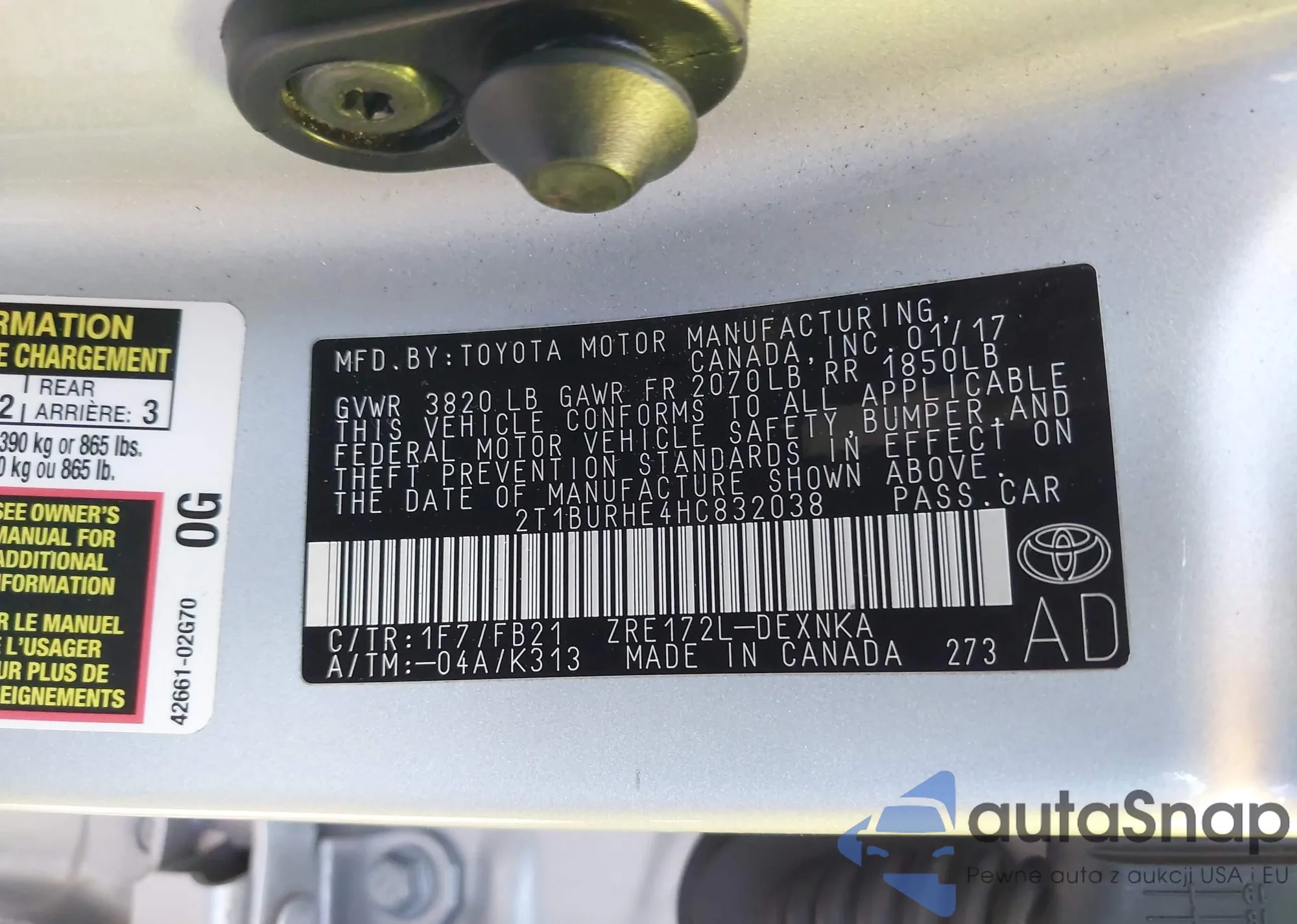 VIN: 2T1BURHE4HC832038