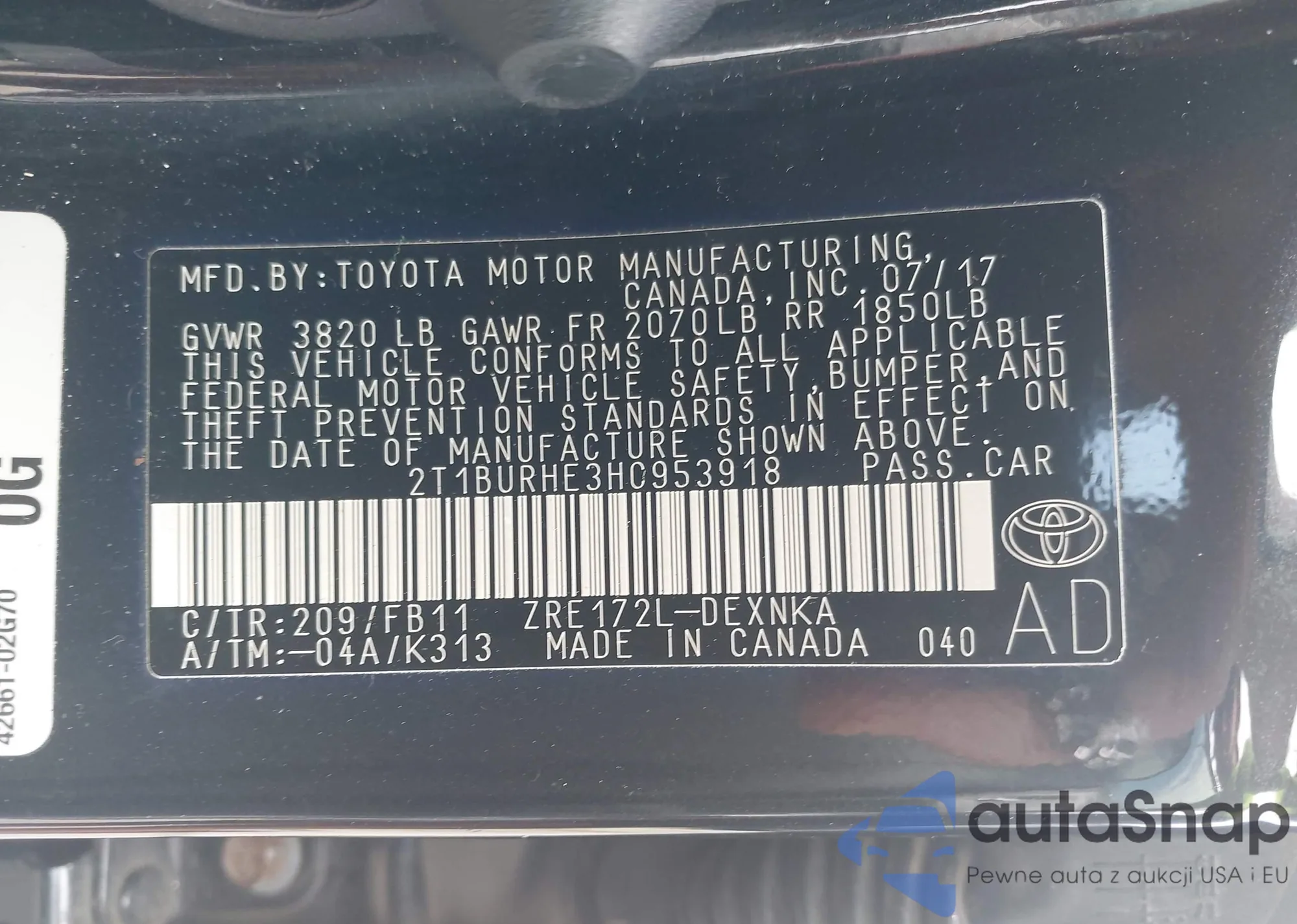 VIN: 2T1BURHE3HC953918