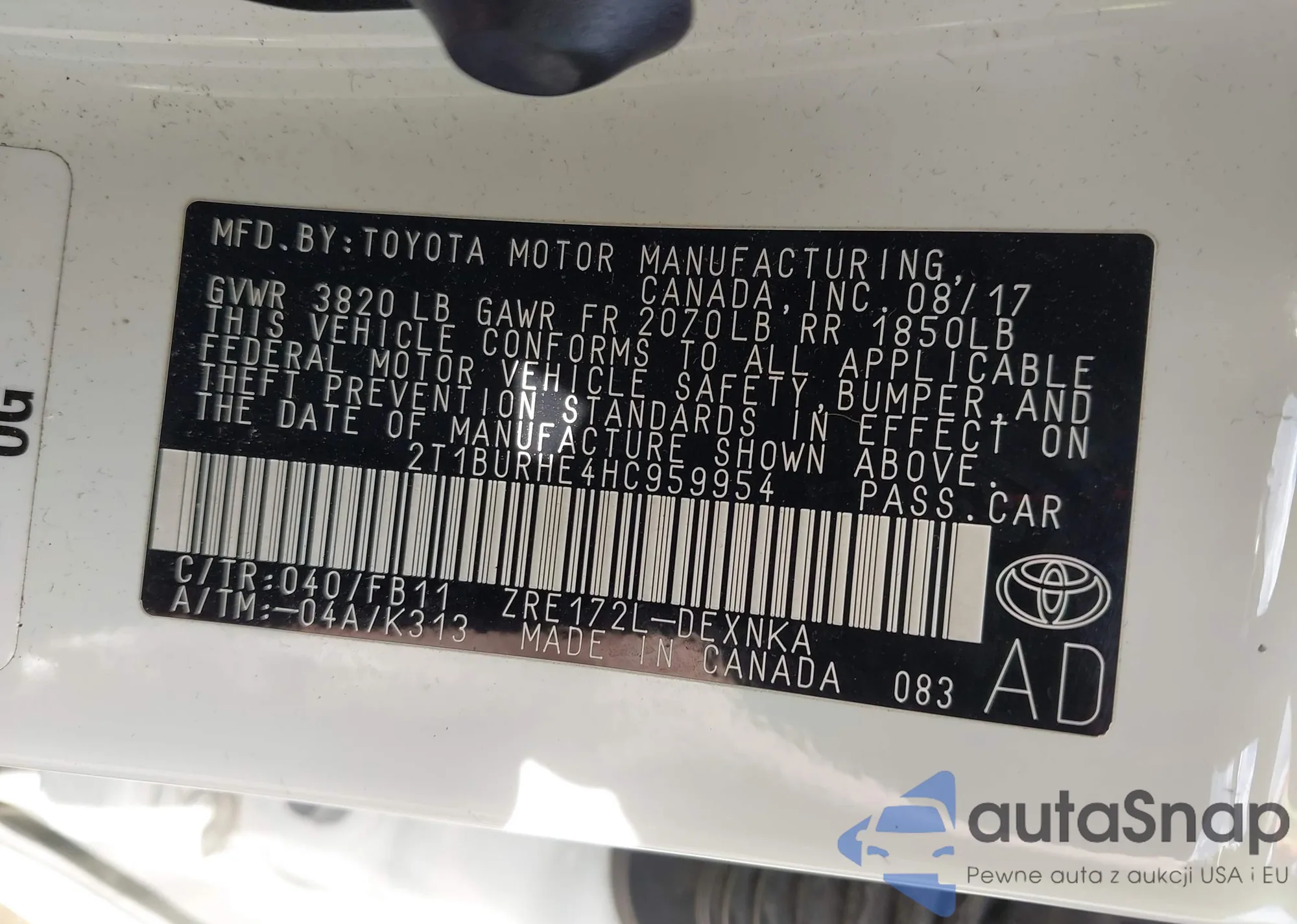 VIN: 2T1BURHE4HC959954