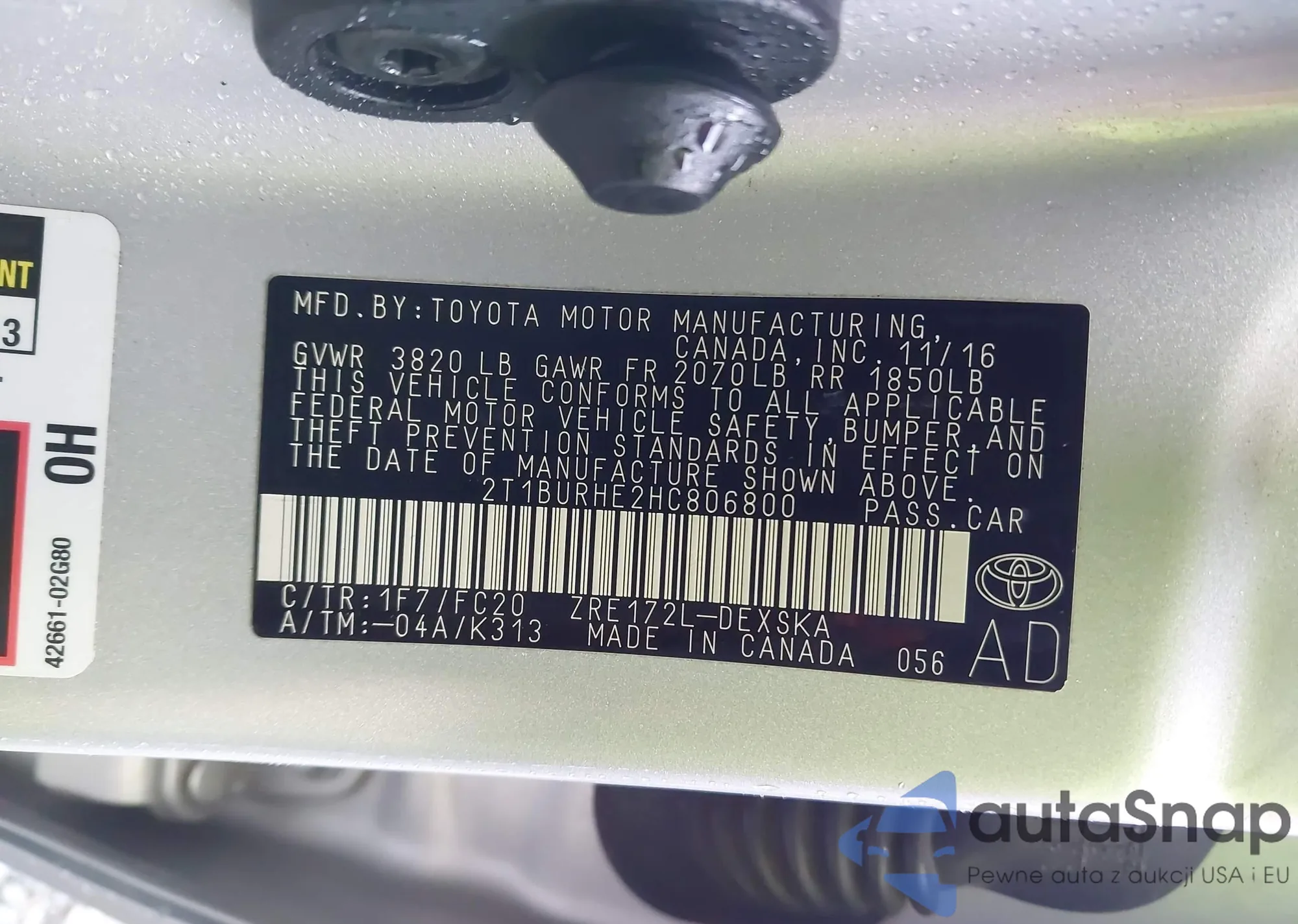 VIN: 2T1BURHE2HC806800